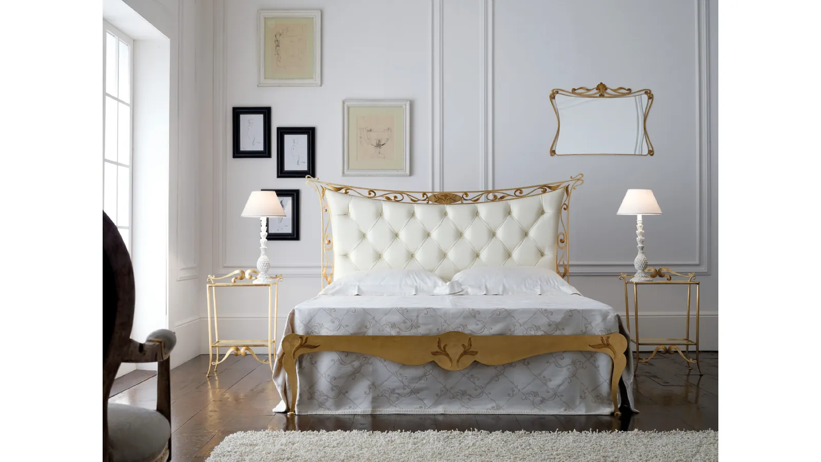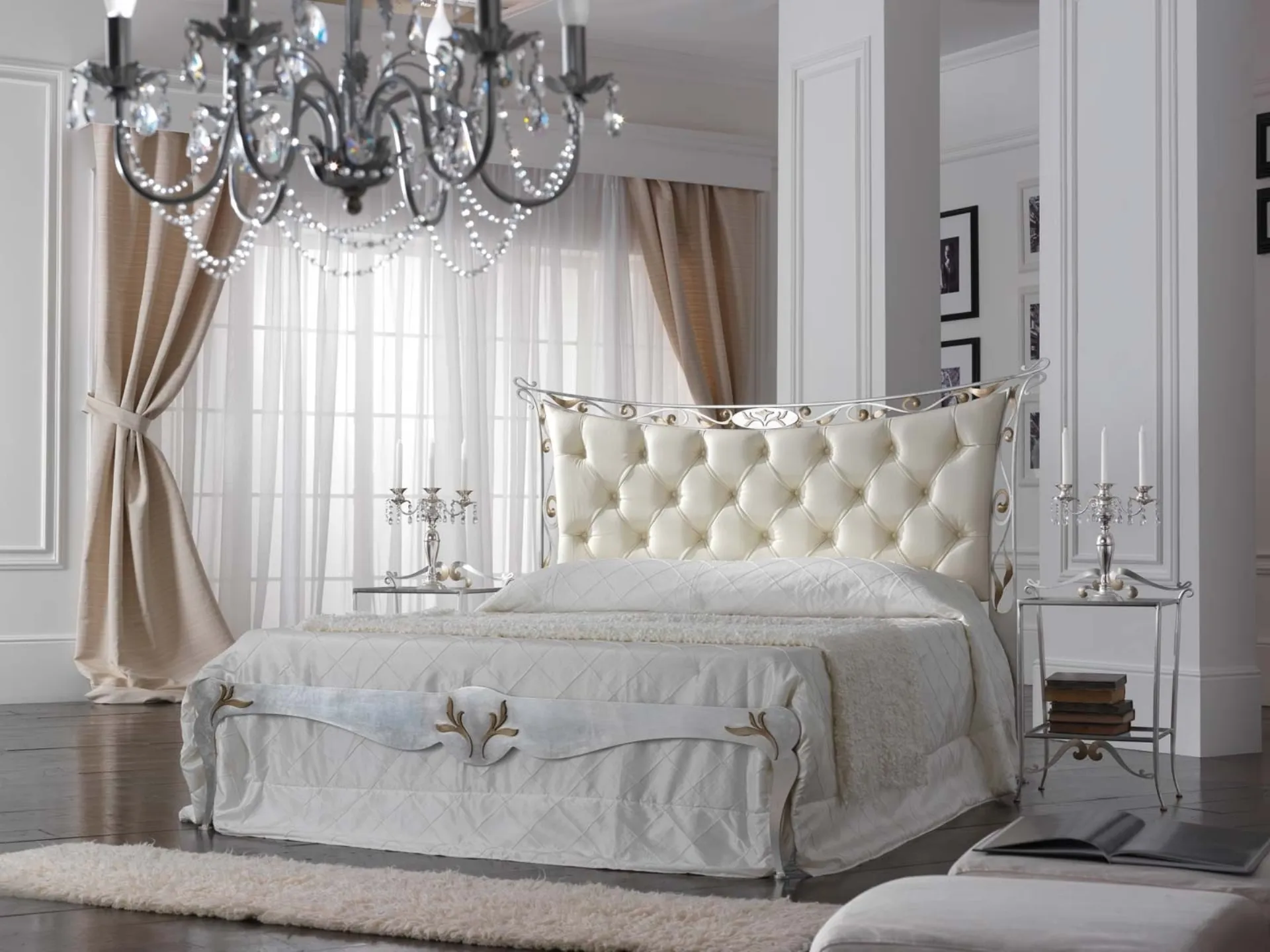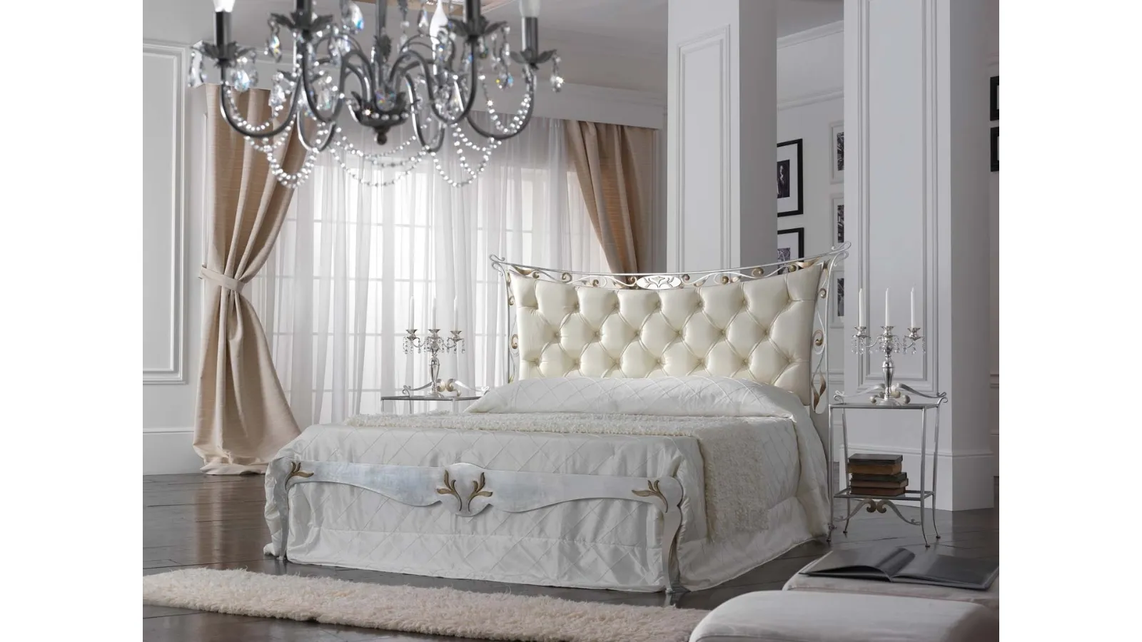 L'elegante letto matrimoniale Agata, firmato Florentiabed, si distingue per la sua robusta struttura in Ferro, vera pelle bianco neve. Il design è impreziosito da un raffinato pannello capitonné, meticolosamente rivestito in vera pelle di tonalità bianco neve, che aggiunge un tocco di lusso e comfort visivo. La finitura in Finitura foglia argento meccata conferisce al letto un aspetto distintivo e di grande impatto estetico. Progettato per garantire la massima stabilità e durata, include un sistema di sostegni integrato specificamente per reti sospese, ottimizzando il supporto e la qualità del riposo. La selezione accurata dei materiali e la precisione costruttiva assicurano un prodotto di elevata qualità, destinato a durare.