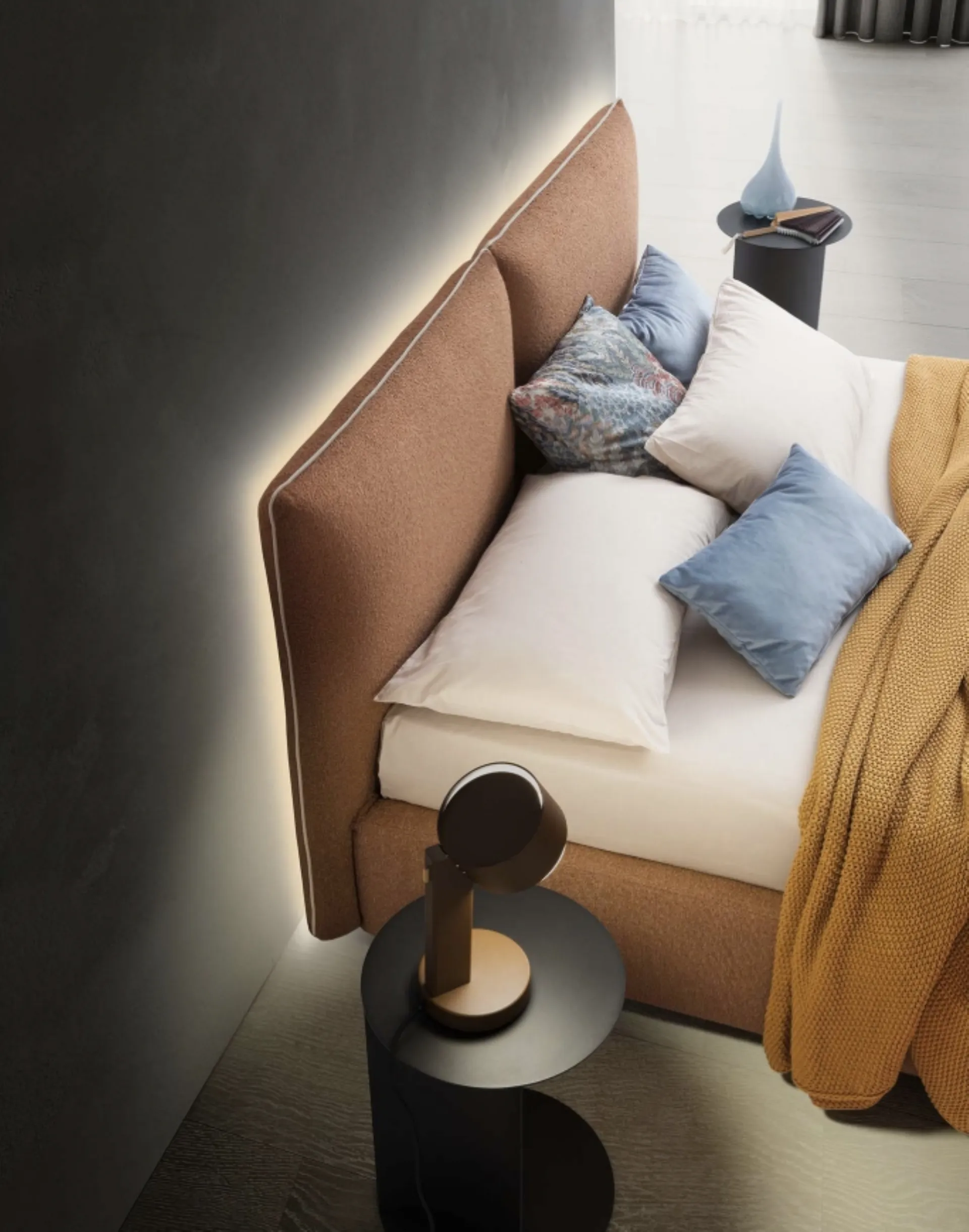 When choosing a good bed model, carefully consider its measurements, finishes, shape, and style compared to the rest of the furniture pieces. If you prefer a fabric solution, the model visible in the photo is characterized by high-quality materials and bold shapes, which invite you to have a peaceful and restorative sleep. The Allen Bed by Le Comfort recreates a welcoming and comfortable space in every bedroom, ensuring total relaxation and a unique style. Choose tones and textures and create your own bedroom decor concept, designing it just as you have always dreamed. The double beds with storage from the company, a specialist in the production of home furniture for the sleeping area, are designed to be paired with furniture and accessories of all kinds, such as wardrobes and nightstands, lamps, and floor lamps.
