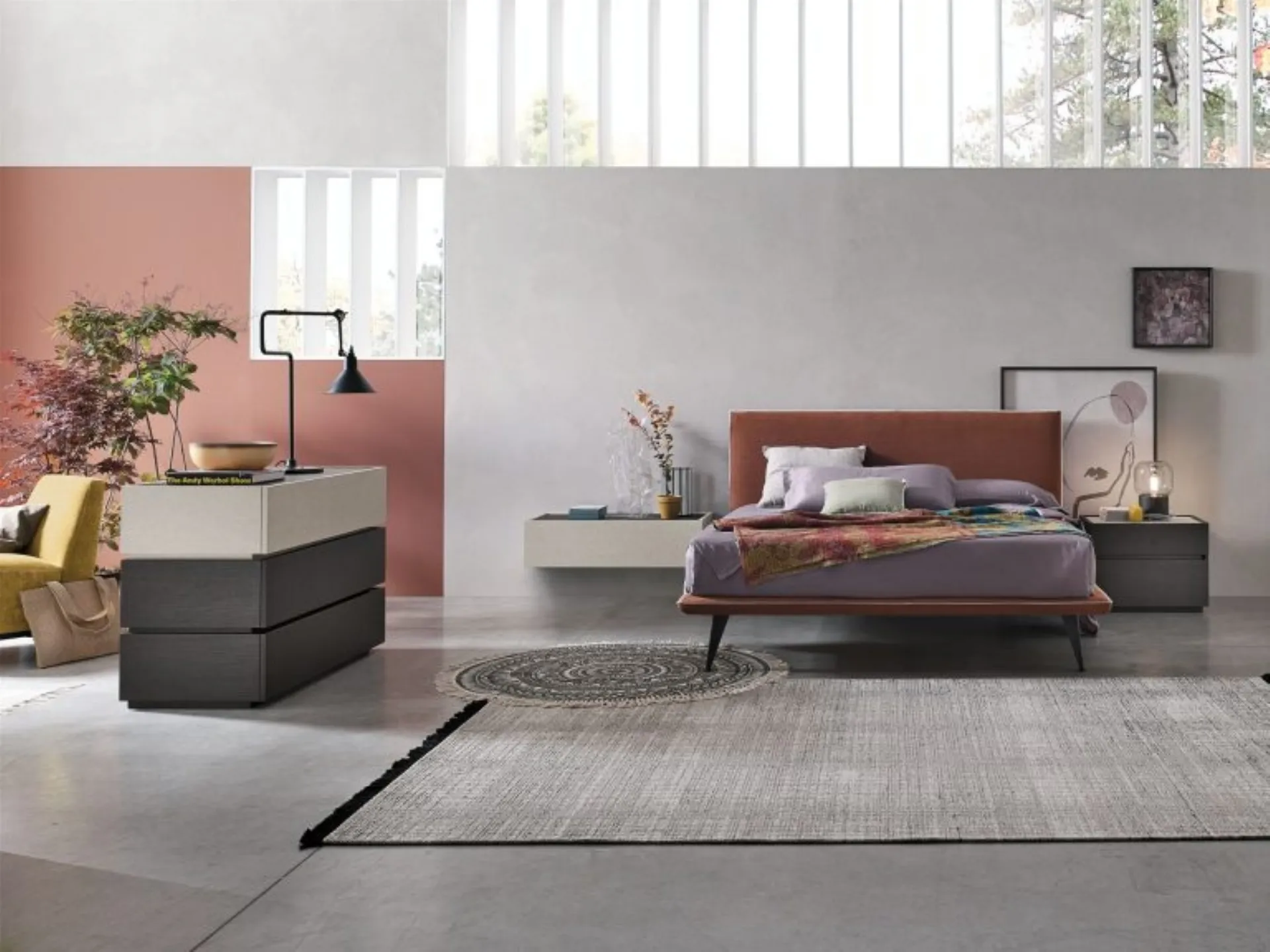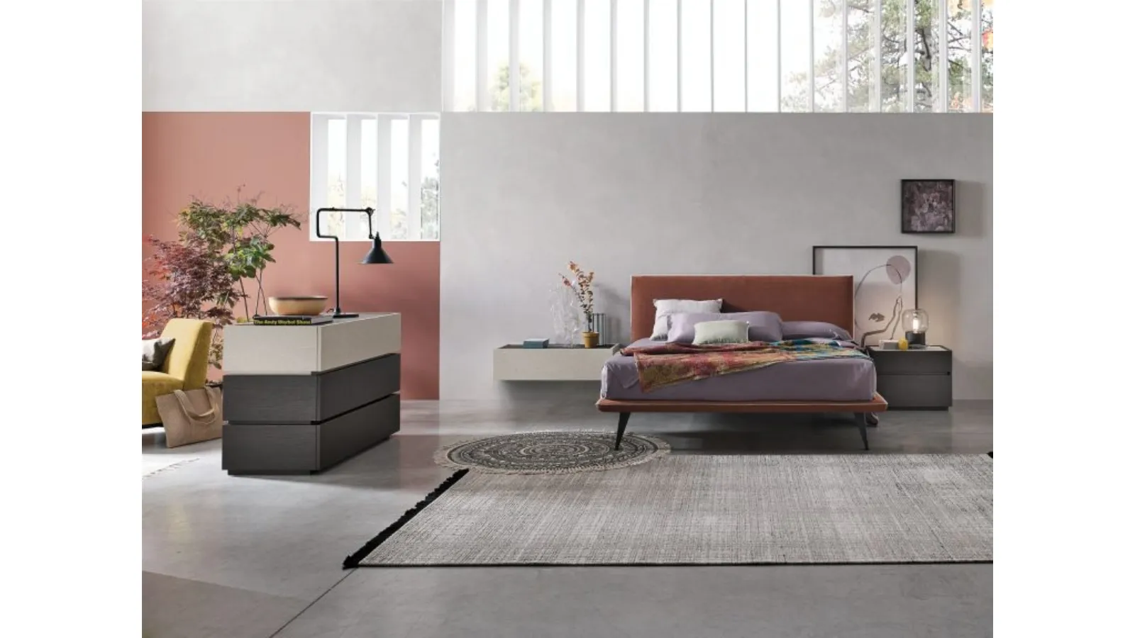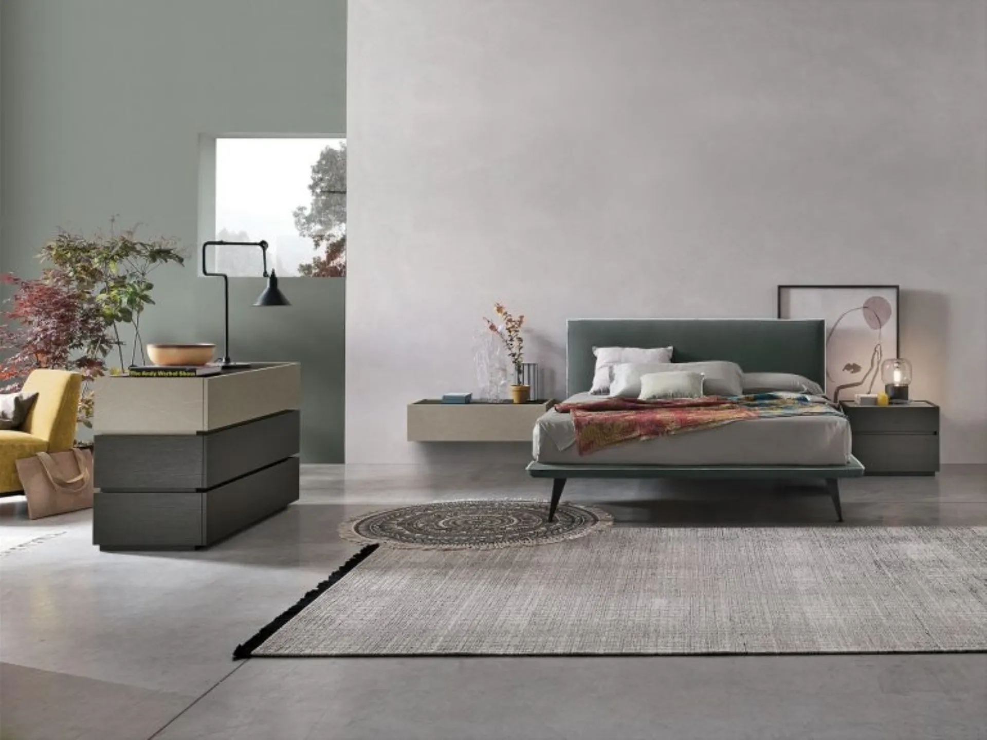 The upholstered double beds by the signature, a leader in the production of home furnishings for the rest area, are designed to be matched with furniture and accessories of all kinds, such as wardrobes and dressers, lamps and floor lamps. The Tomasella Bravo Bed creates a familiar and comfortable space in every bedroom, ensuring you the deepest sleep and a unique design. Choose colors and textures and create your furnishing project in the bedroom, designing it just as you have always dreamed. If you want a fabric solution, the model shown in the photo is characterized by top-quality materials and bold shapes, inviting you to enjoy complete and regenerating rest. When purchasing a good bed model, carefully consider its measurements, finishes, shape, and style compared to the rest of the furnishings.