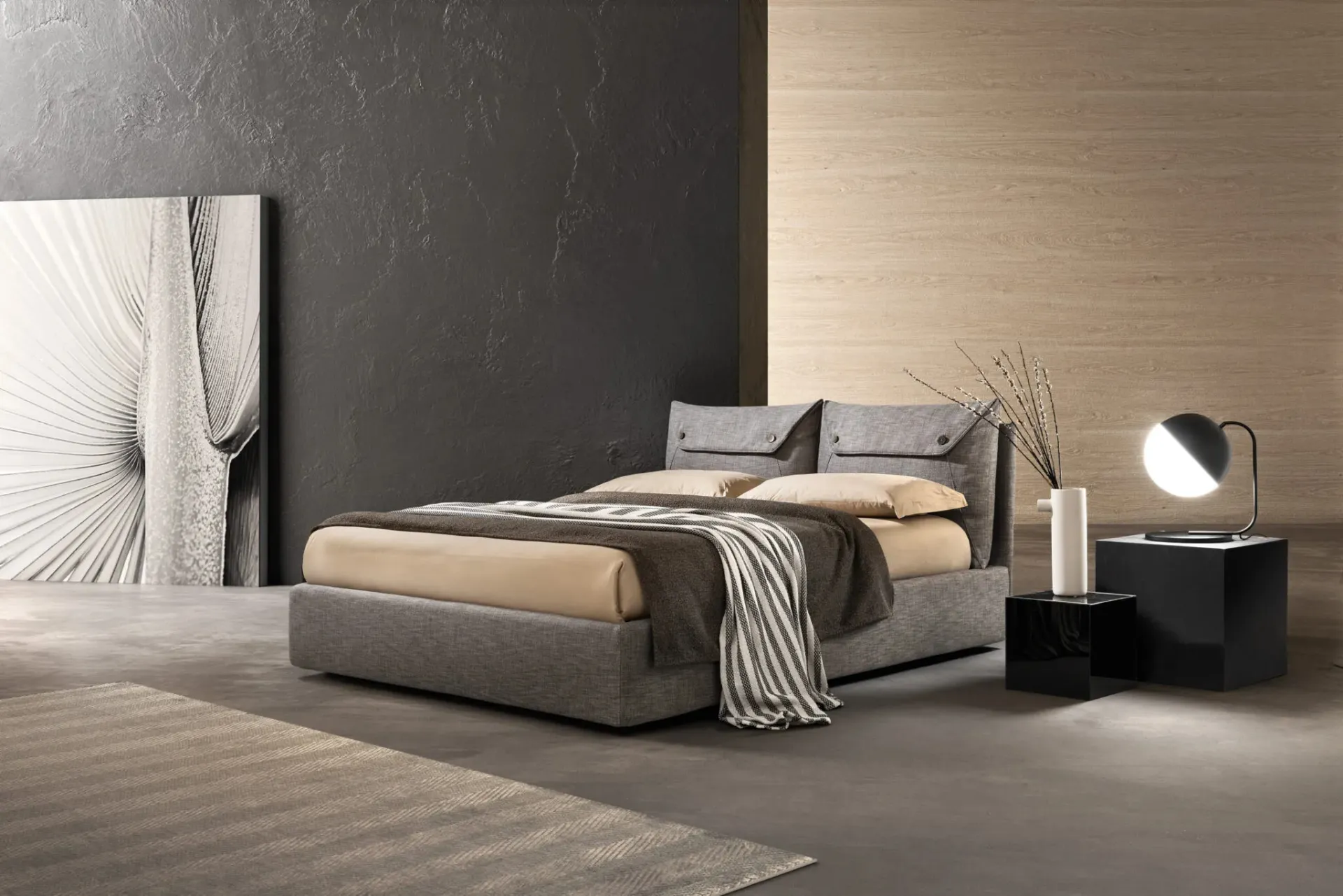 The Bside Fabric Bed is one of the most original solutions from the brand, specialists in rest, capable of ensuring functionality, comfort, and a unique style. Discover a rich catalog of upholstered beds from the best home furnishing producers available in store and enhance your bedroom. On our website, you can find the best proposals from top producers specializing in rest area furnishings, with a wide range of customization options in terms of colors, combinations, accessories, and much more. If you want to ensure total comfort in your moments of rest, choose modern double beds in fabric like the model visible in the photo. The bedroom is the room in the house that most reflects the taste of the user, an interior dedicated to rest, relaxation, and privacy.
