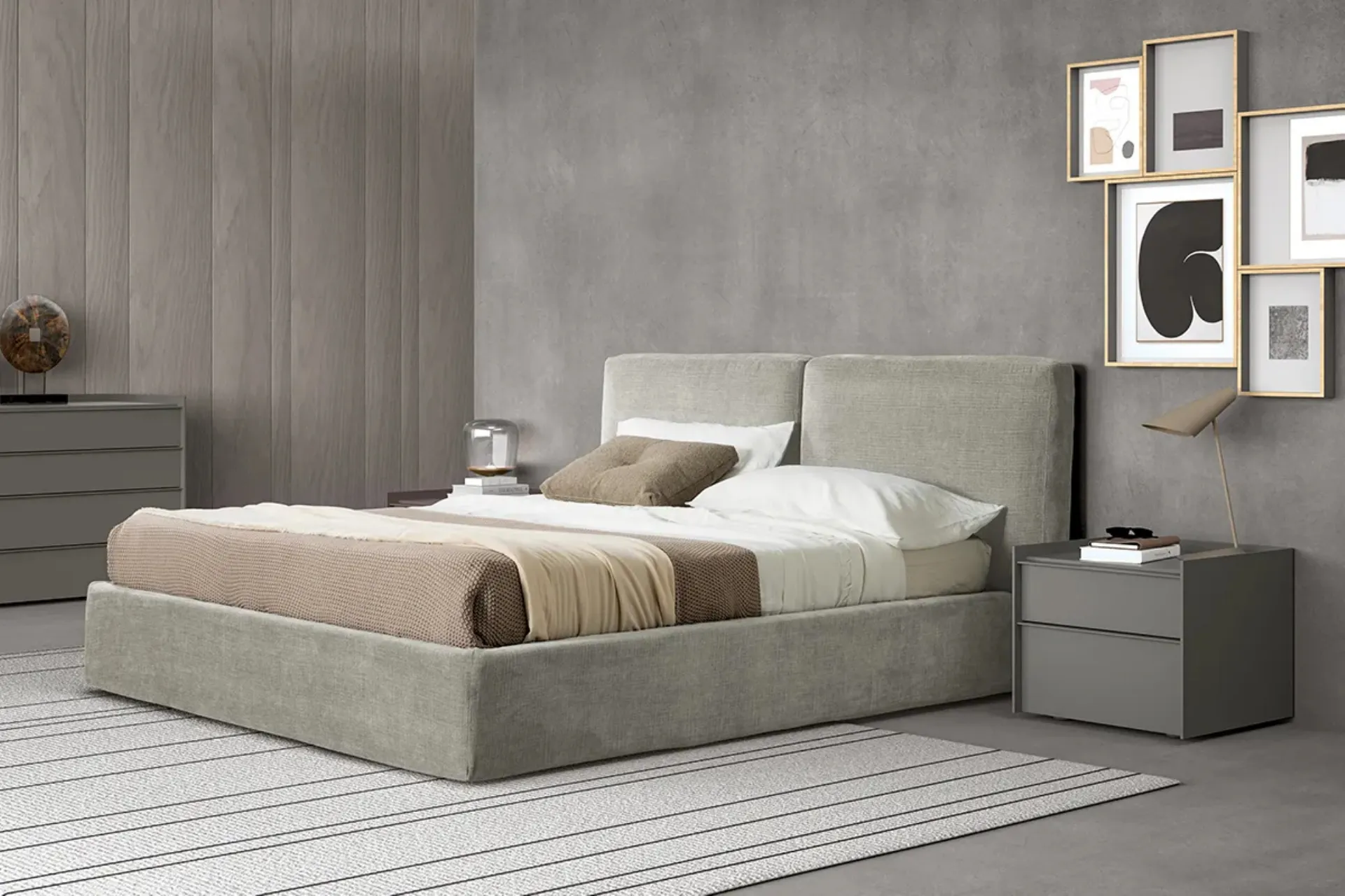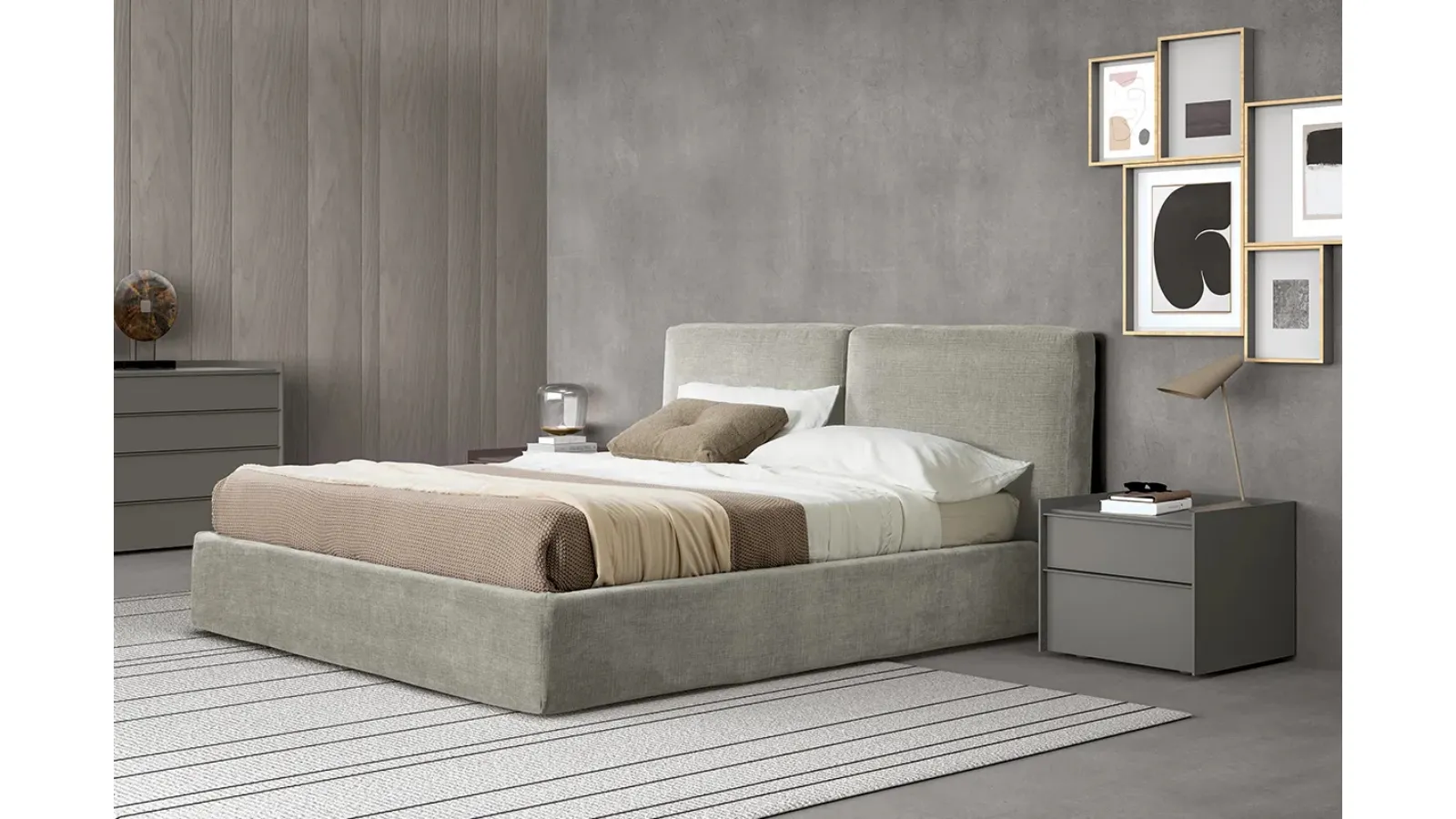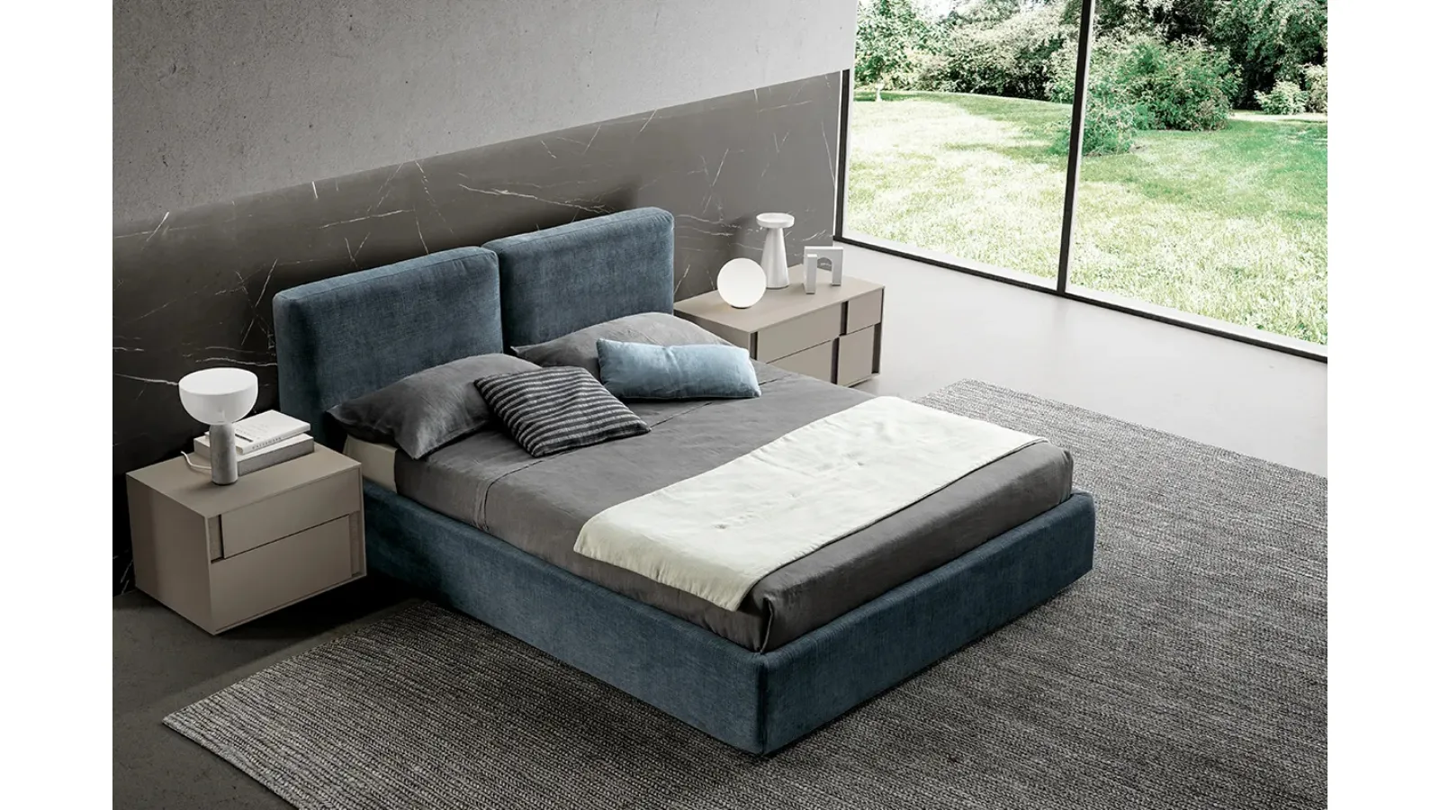 The Cloud Bed with Adok storage is one of the most beautiful solutions from the brand, a specialist in good sleep, capable of guaranteeing functionality, comfort, and a unique design. Discover a rich catalog of storage beds from the best Furniture House manufacturers available in store and enhance your sleeping area. On our website, you will find the most valid solutions from the best manufacturers specialized in bedroom furniture, with a wide range of customization options in terms of colors and combinations, accessories, and much more. The bedroom is the room in the house that best reflects the taste of those who inhabit it, an interior dedicated to rest, relaxation, and privacy. If you want to ensure total comfort during your moments of relaxation, choose modern double beds in fabric like the model shown in the photo.