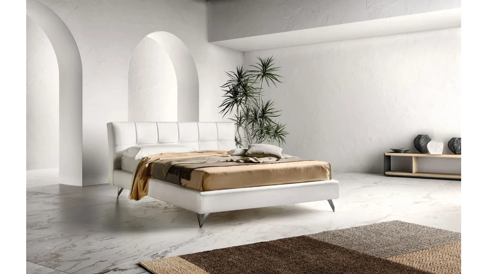 Beds are the protagonists of every rest area, essential furnishings to ensure a peaceful and rejuvenating rest and the right support for the spine. Bside's Contemporary quilted bed: it will prove to be ideal for modern spaces, it is a solution designed to guarantee the deepest sleep every night. The renowned brand is a specialist in good sleep: a rich catalog of upholstered double models, also made in leather, is waiting for you in our store. With us, you can create the bedroom just as you imagined it, beautiful and of great quality as well as complete with a wide range of modern accessories. With Bside's leather double beds, including the model in the image, you will have in your bedroom a beautiful and very functional piece of furniture.