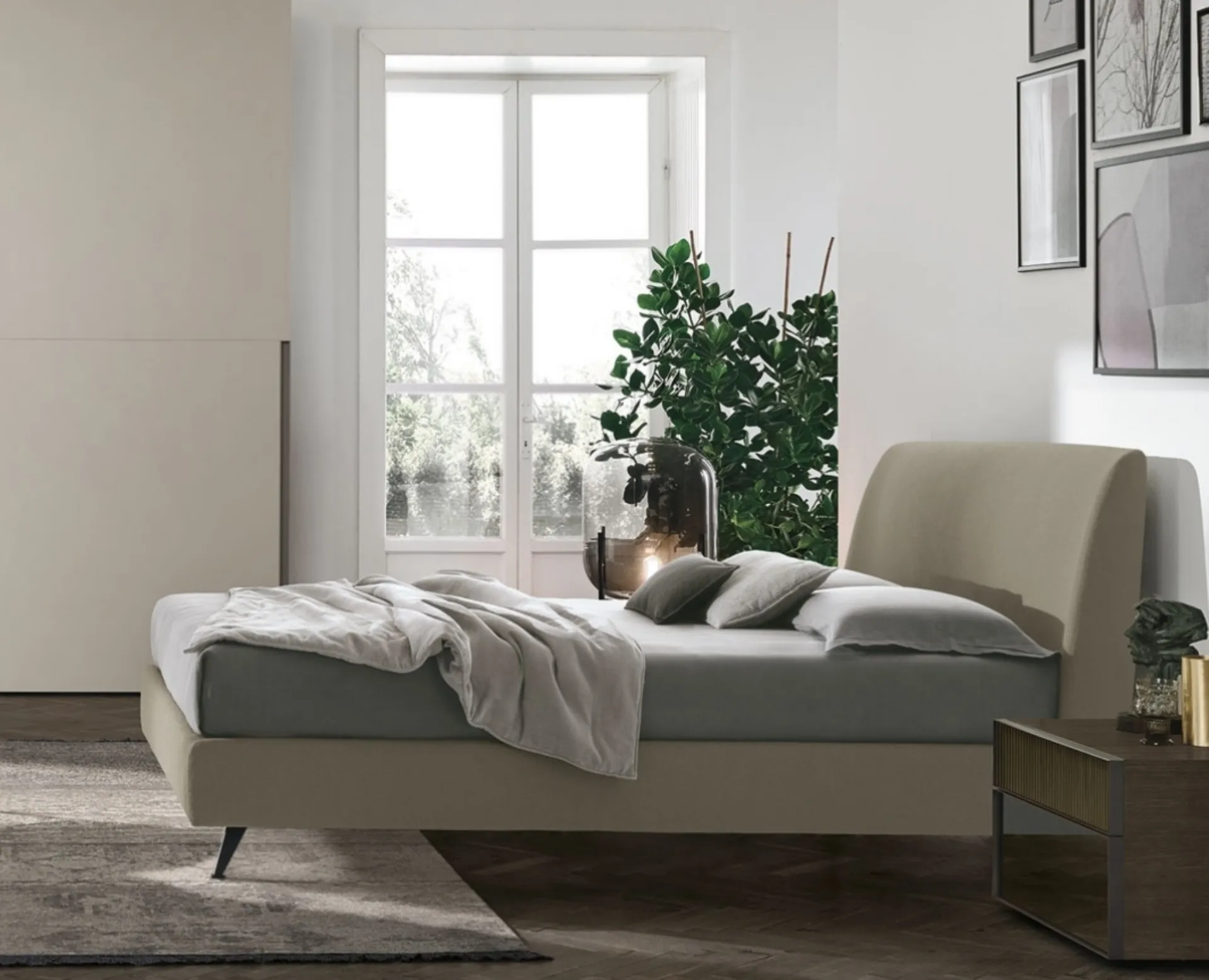 If you want to furnish modern spaces, we wait for you to show you our Home Furnishing profile to realize your custom concept. Discover in store a wide range of upholstered beds, furniture and accessories for the bedroom from the best brands. If you want to recreate an intimate and relaxing atmosphere, the model visible in the photo is perfect for you: in the resting room you will have to recreate a relaxing atmosphere, to recharge your mental and physical energies every night. Durability of finishes and great comfort are the aspects that characterize all products of the brand, including the fabric bed in the image. With the Dalia Fabric Bed by Tomasella of the well-known and recognized brand, a leader in the sector, you can complete your sleeping area ensuring comfort, functionality and a clean design.