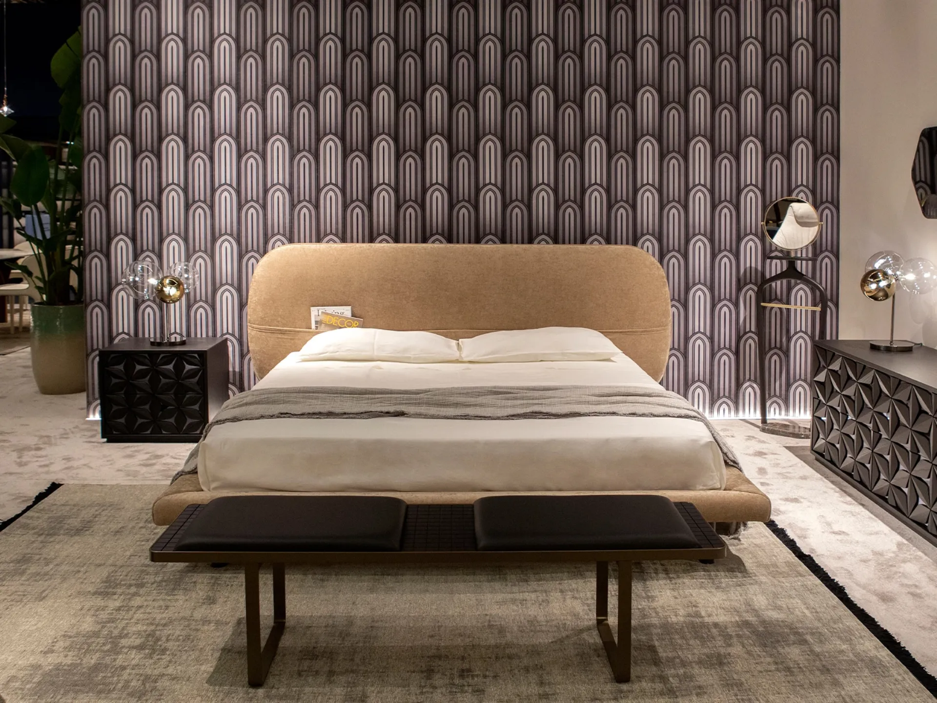 Velvet bed with Dan headboard by Tonin Casa.