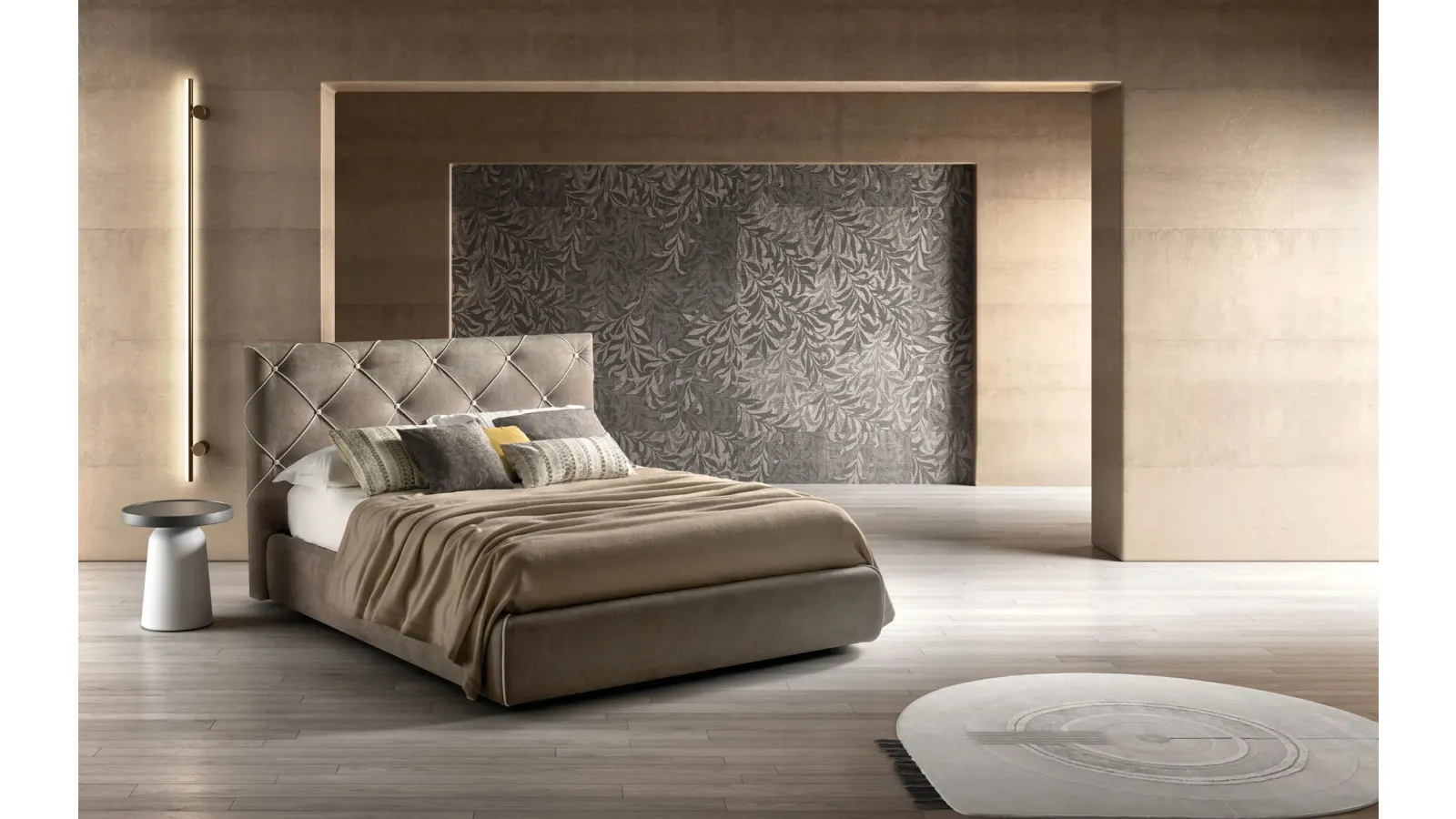 If you want to recreate an intimate and calming atmosphere, the model shown in the photo is perfect for you: in the relaxation room, you will need to recreate a calming atmosphere to recharge your psychophysical energies as you deserve. If you want to design classic spaces, we are waiting for you to show you our Home Furniture design to realize your custom concept. Safety of finishes and great comfort are the ingredients that characterize all products of the brand, including the fabric bed in the image. Discover in our showroom a rich catalog of upholstered beds, furniture, and accessories for the bedroom from the best manufacturers. With the Diamond Upholstered Bed by Bside, a well-known and reputable brand specialist in the sector, you can enhance your room ensuring comfort, practicality, and refined style.