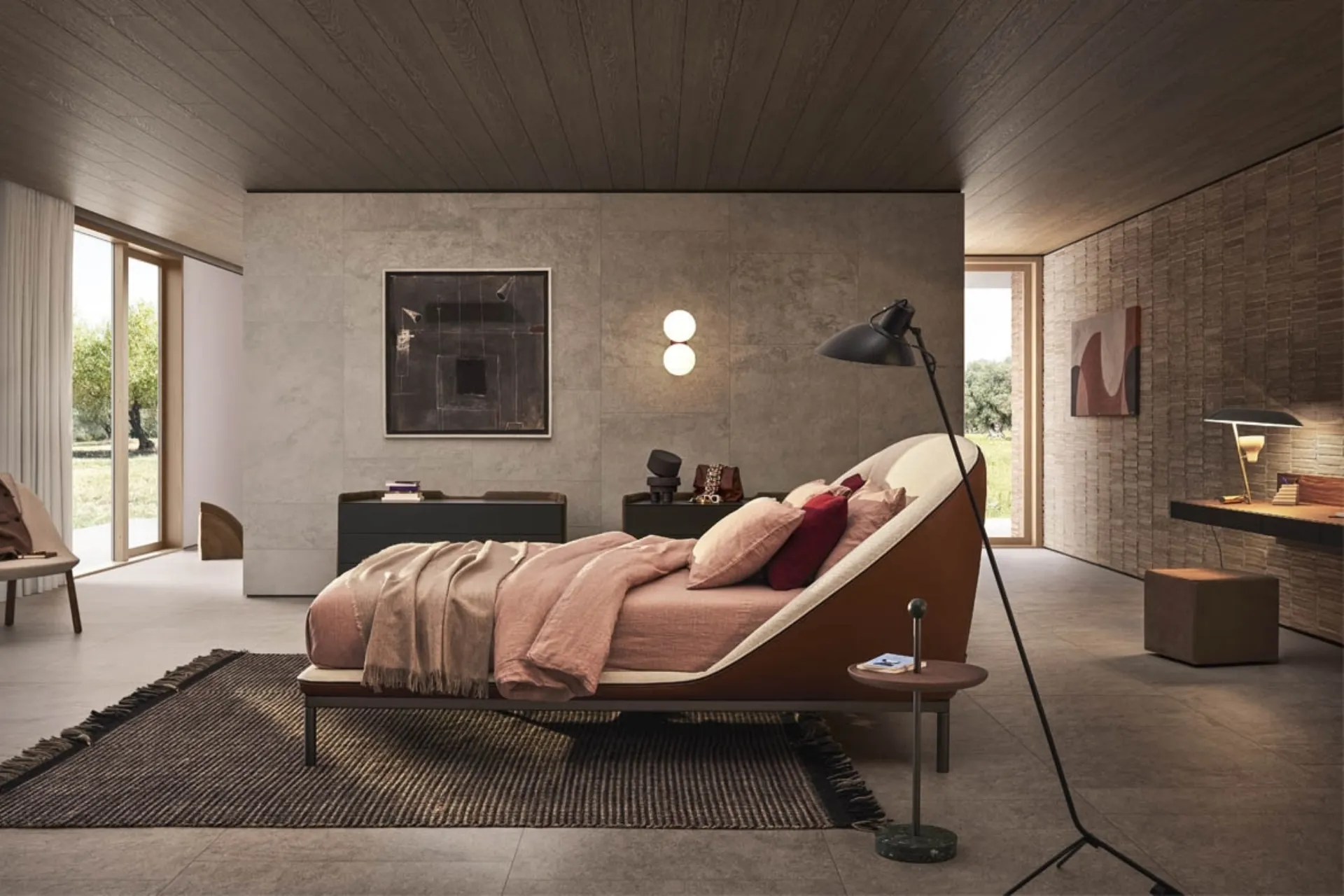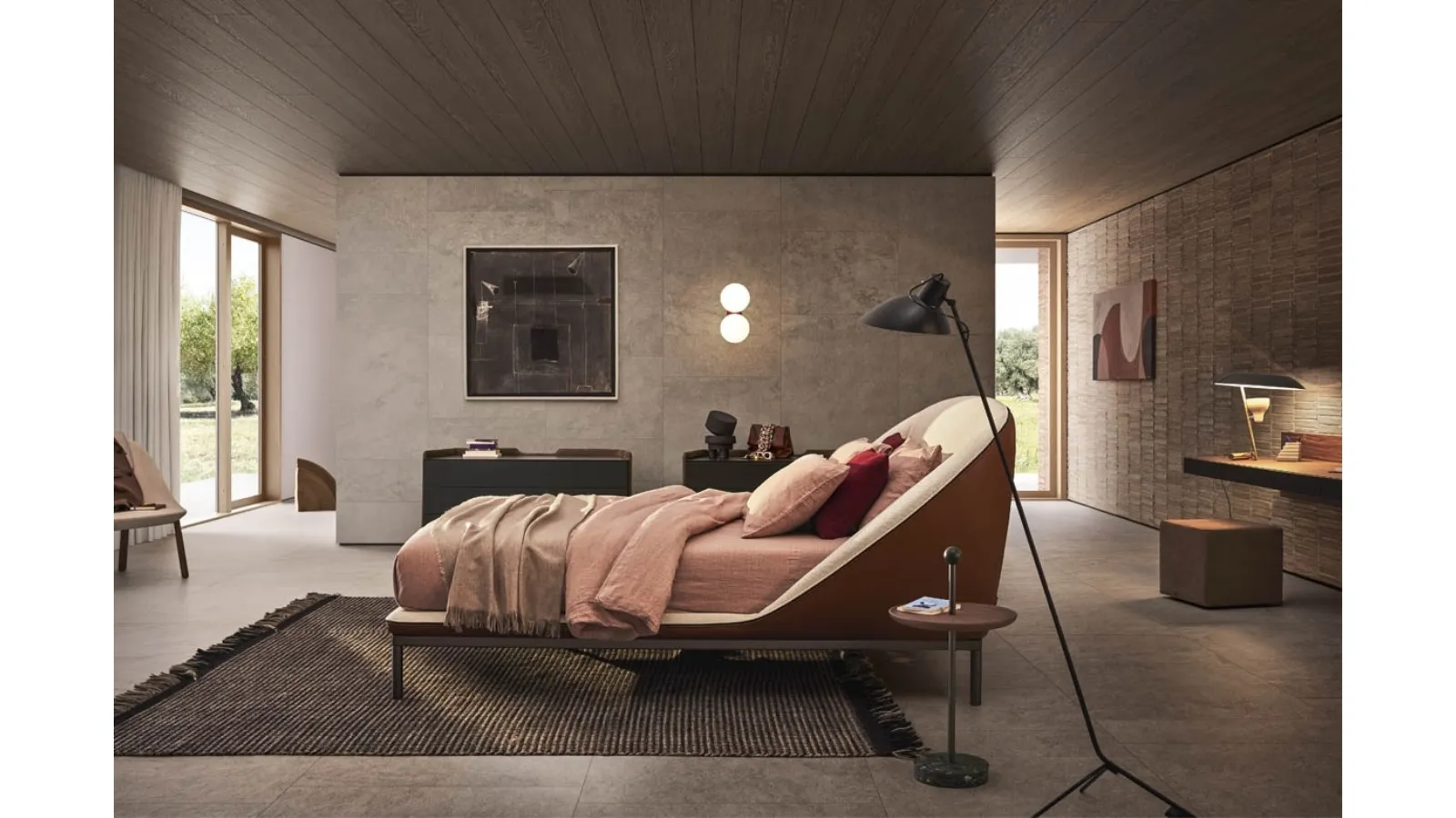 Il letto Domenica, ideato da Simone Bonanni per Pianca, rappresenta un'evoluzione nel concetto di comfort abitativo. La sua architettura è studiata per generare un ambiente di riposo ottimale, caratterizzato da un design avvolgente e proporzioni bilanciate. La testiera, interamente imbottita, offre opzioni di personalizzazione attraverso un'ampia gamma di rivestimenti tessili, pelli naturali e sintetiche, con la possibilità di configurazioni bicolore per un impatto visivo distintivo. La base è disponibile sia con sistema sommier contenitore integrato per una gestione ottimizzata dello spazio, sia con eleganti piedini in metallo laccato che ne elevano la silhouette. La costruzione interna si avvale di un telaio robusto in legno massello e tamburato, completato da un'imbottitura in poliuretano espanso ad alta densità per garantire durabilità e resilienza. Un elemento funzionale e al contempo estetico è la cerniera a vista, che definisce il perimetro del letto, trasformandosi in un raffinato dettaglio di finitura. Per un'analisi dettagliata delle specifiche costruttive e delle opzioni di personalizzazione materiche, si raccomanda di consultare la documentazione tecnica ufficiale o di richiedere una consulenza specialistica.