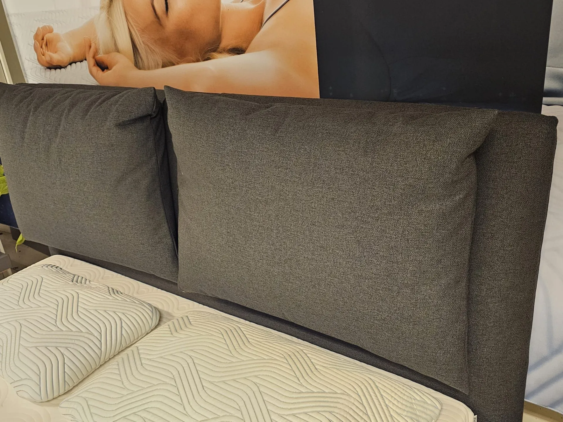 Bed Two by Tempur characterized by the headboard composed of two pillows to comfortably lean on while chatting, reading or enjoying breakfast in bed.