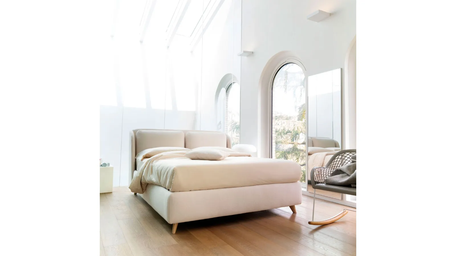Fabric bed with Hello headboard by Noctis: a rich range of upholstered double beds awaits you