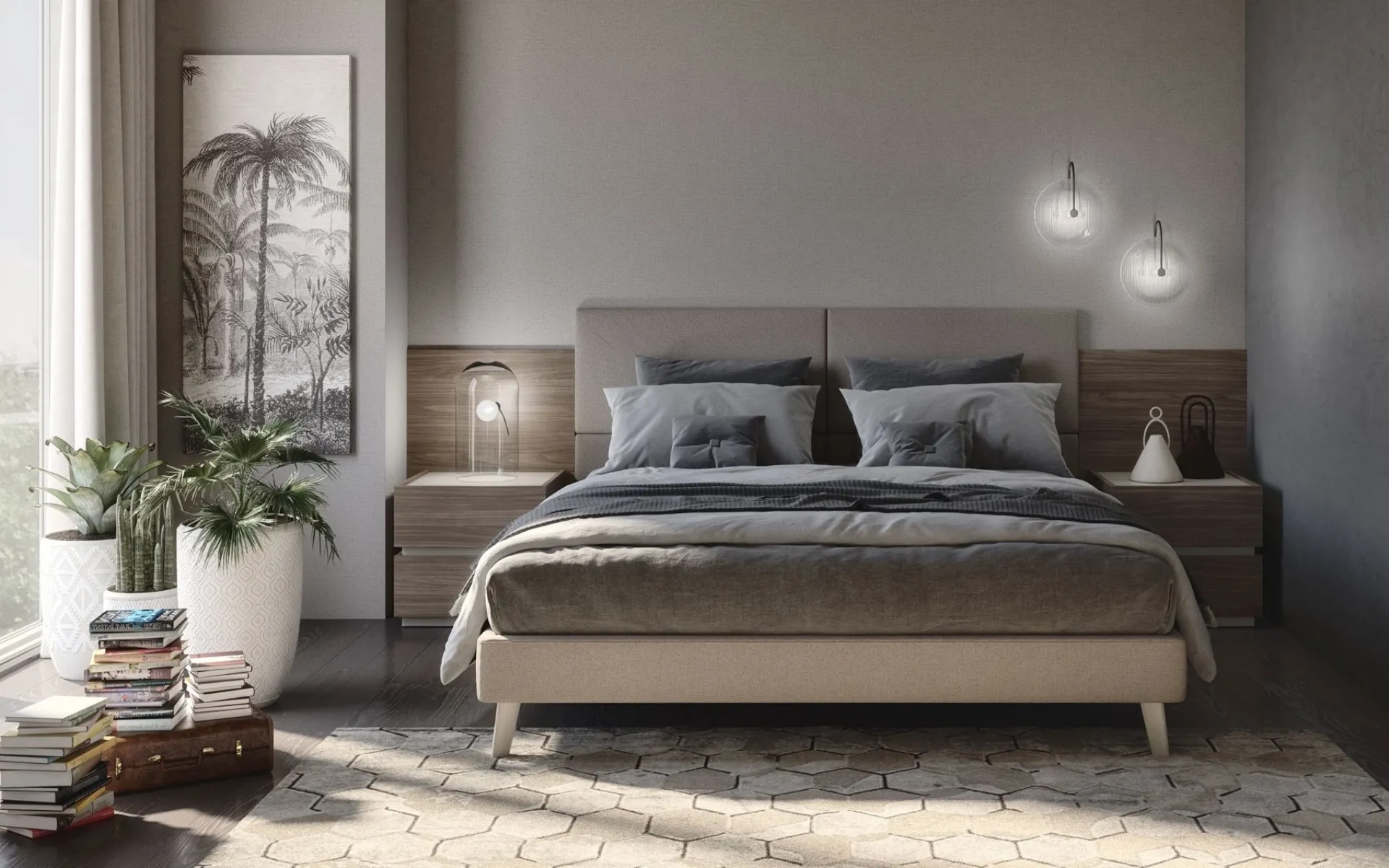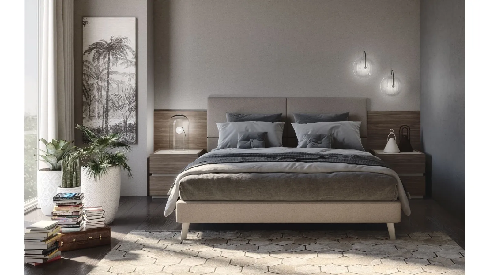 Beds are the protagonists of every bedroom, essential furniture to ensure a peaceful and restorative sleep and the right support for the back. With the double beds in S75 fabric, including the model in the photo, you will have a beautiful and highly functional piece of furniture in your room. Bed with Jolly headboard with 4 S75 padded panels: it will prove to be ideal for modern spaces, it is a composition designed to guarantee total relaxation every night. The well-known brand is a specialist in good sleep: a rich range of upholstered double models, also made of fabric, is waiting for you in our showroom. With us, you can create the bedroom just as you have always dreamed it, beautiful and functional as well as complete with a wide selection of modern accessories.