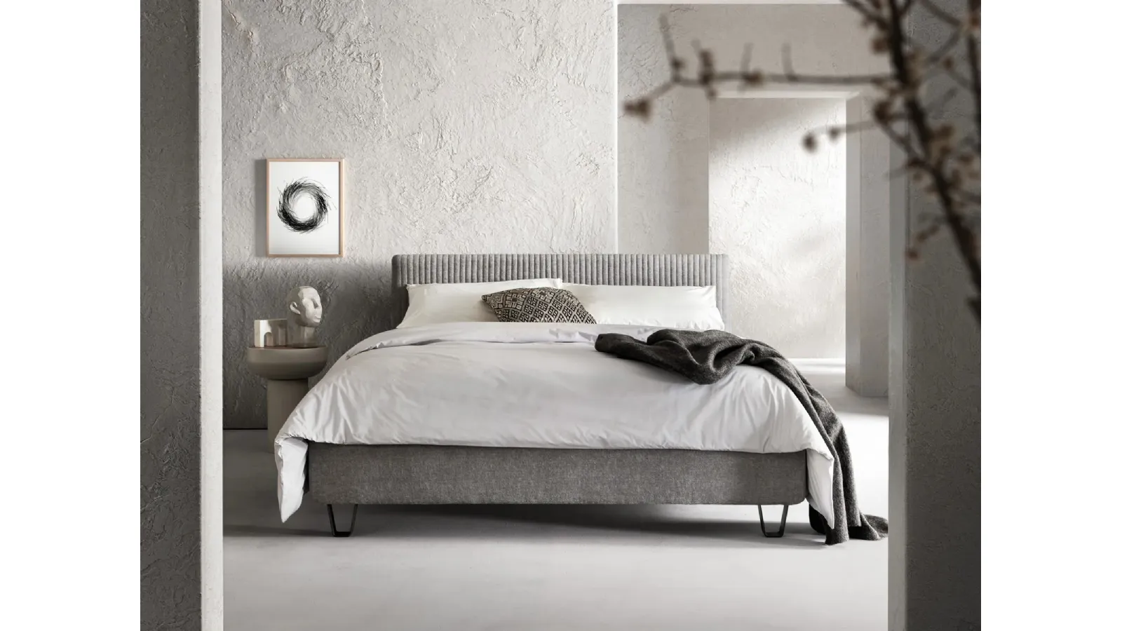 The Keen fabric bed by Bside optimizes the room ensuring you the best rest and a careful aesthetic