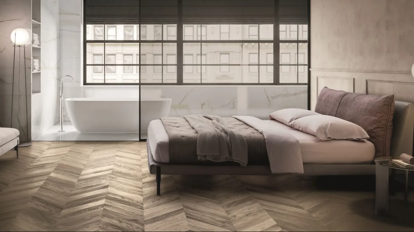 The Kim bed by Ditre Italia enhances the room ensuring the deepest sleep and an accurate aesthetic research