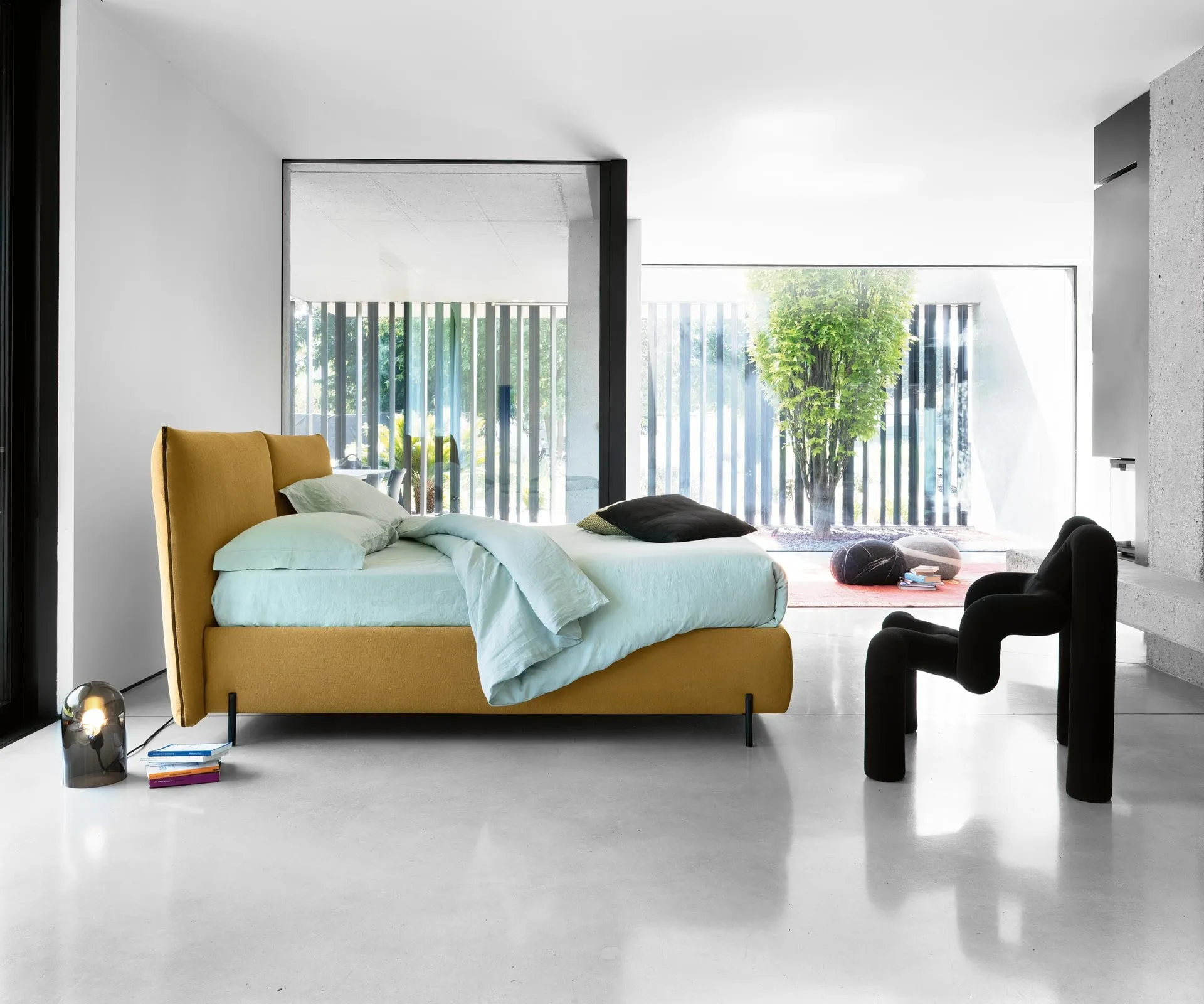 Choose shades and textures and create your bedroom furnishing project, designing it just as you had dreamed it. The upholstered double beds of the brand, a specialist in home furnishings for the bedroom, are designed to be matched with furniture and accessories of all kinds, such as wardrobes and bedside tables, lamps and floor lamps. If you want a fabric solution, the model shown in the photo is characterized by precious materials and sharp lines, which invite you to enjoy a peaceful and restorative rest. The London headboard bed by Noctis creates an intimate and comfortable space in every bedroom, guaranteeing you the best rest and a unique style. During the choice of a good bed model, carefully evaluate its dimensions, finishes, shape, and its style compared to the rest of the furnishings.