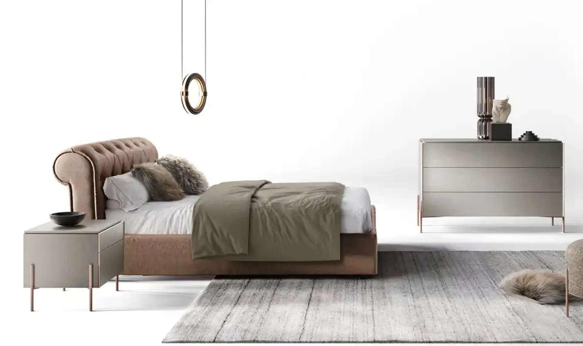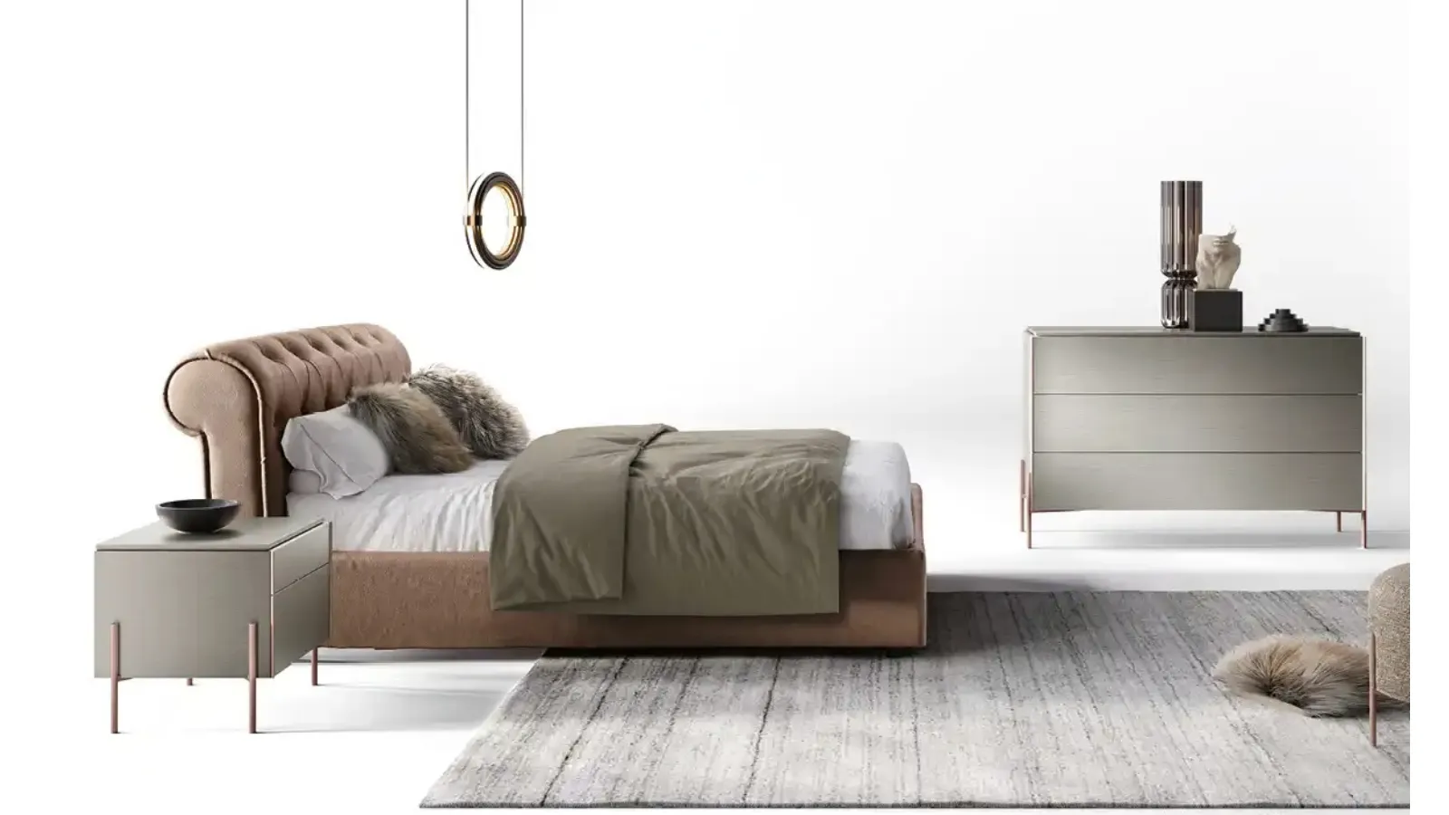 If you wish to furnish classic spaces, we are waiting for you to show you our Home Furniture design to make your custom concept a reality. Discover in our showroom a wide range of upholstered beds, furniture, and accessories for the sleeping area from the best brands. If you wish to recreate an intimate and soothing atmosphere, the model visible in the photo is perfect for you: in the sleeping area, you will need to recreate a soothing atmosphere to recharge your physical and mental energies every night. With the Classic Mimosa V11 bed from Moretti Compact Giorno Notte, a renowned specialist in the field, you can enhance your sleeping area, ensuring comfort, functionality, and refined style. Durability of materials and great comfort are the aspects that distinguish all products from the brand, including the faux leather bed in the photo.