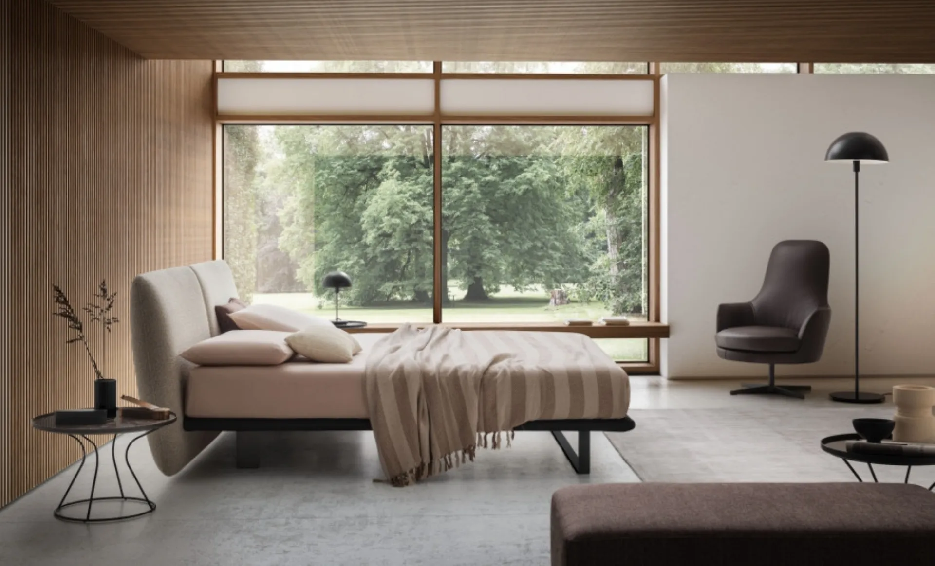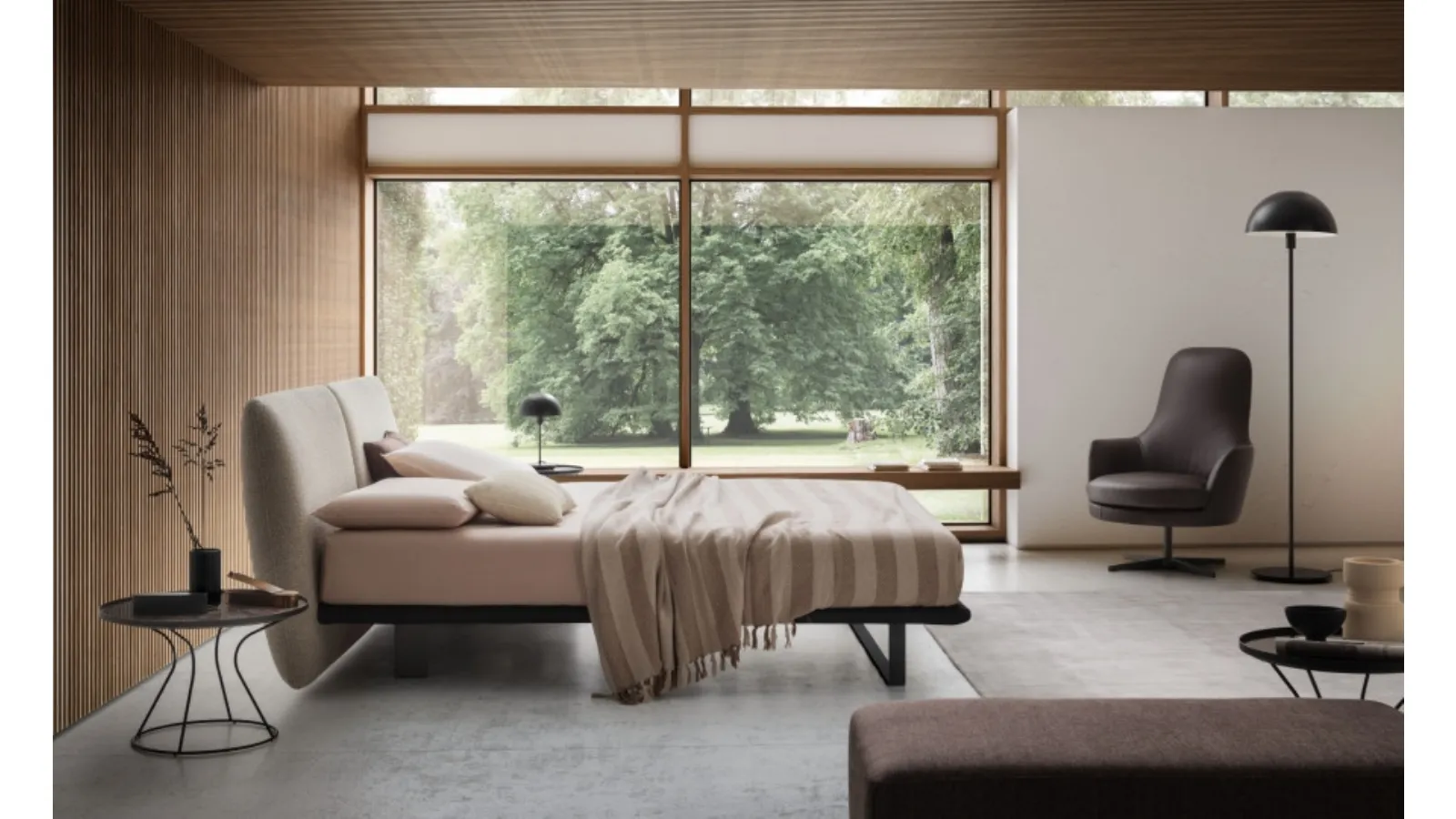 If you want to create an intimate and relaxing atmosphere, the model shown in the photo is perfect for you: in the relaxation room you will have to create a relaxing atmosphere to recharge your mental and physical energies as you deserve. If you want to set up design spaces, we are waiting for you to show you our Home Furnishing design to create your custom concept. Durability of finishes and great comfort are the aspects that distinguish all products of the company, including the fabric bed in the image. With the Monaco Bed by Le Comfort of the well-known and renowned brand, leader in the sector, you can complete your bedroom ensuring comfort, functionality, and clean design. Discover in our store a rich catalog of upholstered beds, furniture, and accessory items for the bedroom from the best brands.