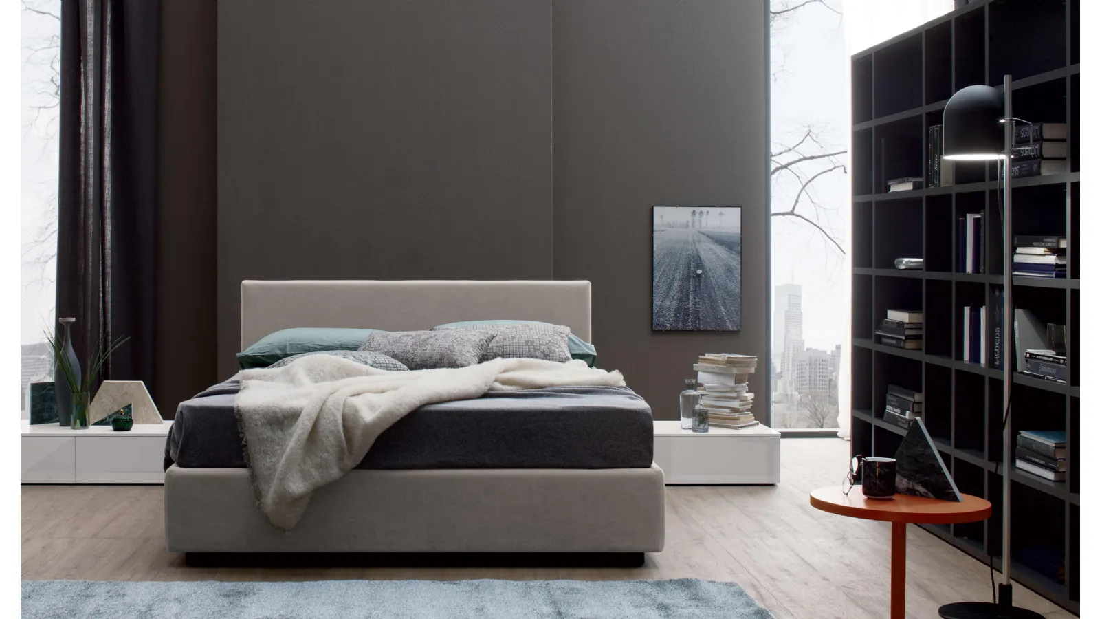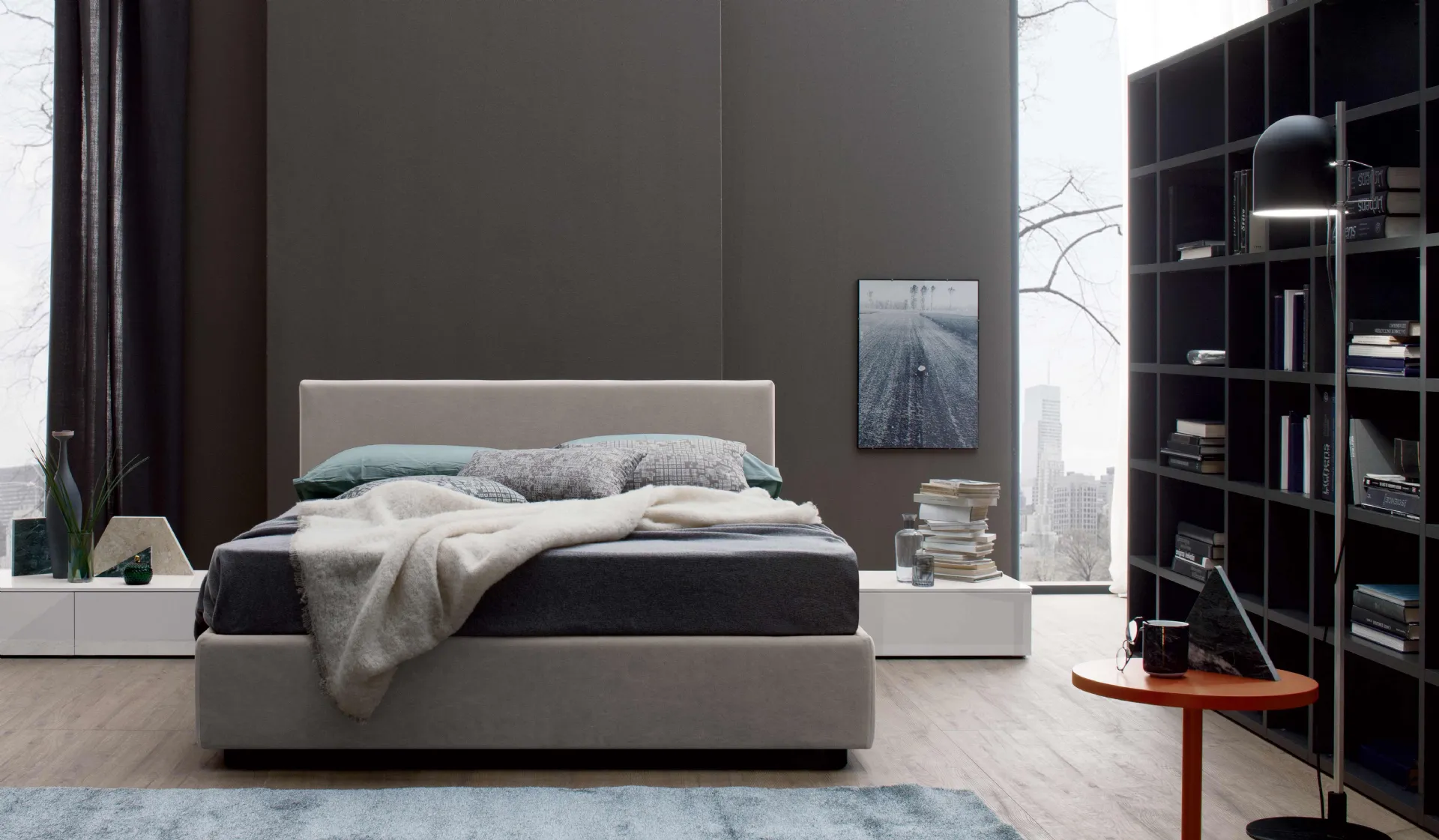 The New Life fabric bed by Spagnol Mobili optimizes the room ensuring total relaxation and an accur