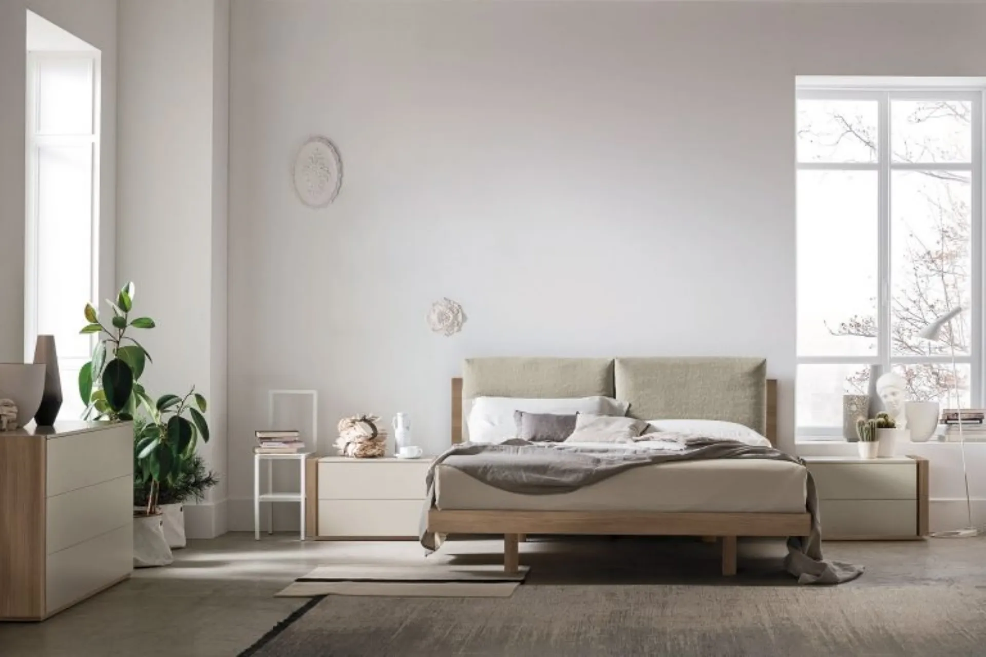 Choose tones and finishes and realize your furnishing concept in the bedroom, designing it just as you have always dreamed. The upholstered double beds of the brand, specialists in the production of home furnishings for the bedroom area, are designed to be paired with furniture and accessories of all kinds, such as wardrobes and bedside tables, lamps and floor lamps. If you desire a fabric solution, the model visible in the photo is characterized by quality materials and clean lines, inviting you to enjoy a peaceful and rejuvenating rest. The upholstered headboard bed Nikki by Tomasella recreates an intimate and comfortable space in any bedroom, ensuring total relaxation and a unique design. When choosing the right type of bed, carefully consider its dimensions, finishes, shape, and style compared to the rest of the furnishings.