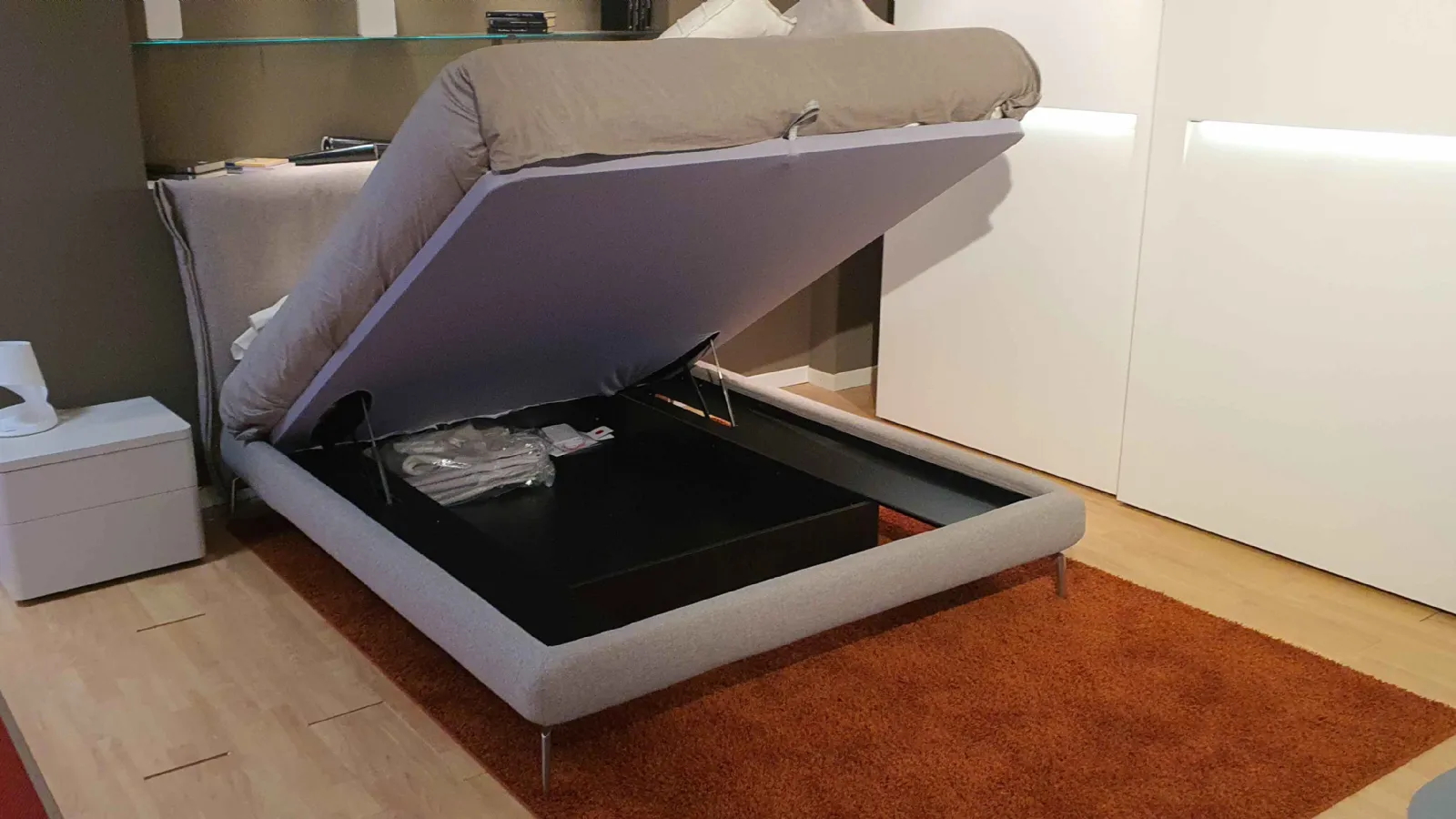 E& # 39; a comfortable bed and & # 39; light& # 39 ;. In fact, despite having the container inside, it has a small and essential bed frame that hides the container compartment inside.