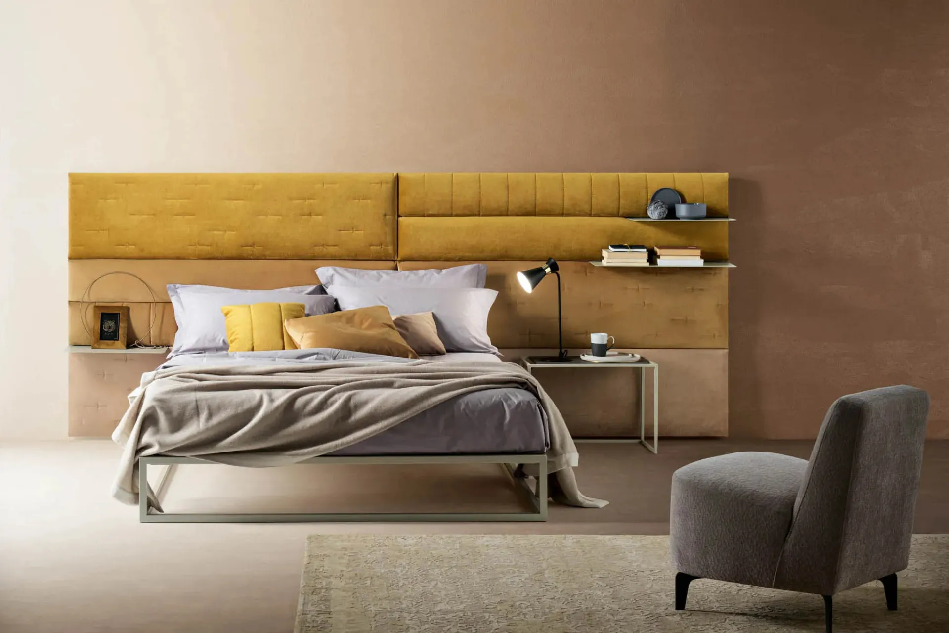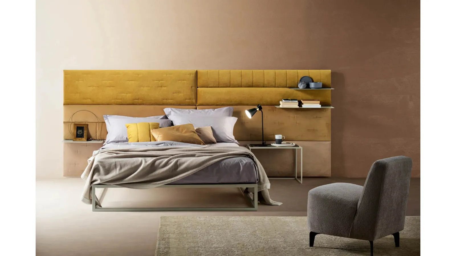 Bed with fabric headboard Pannelli Wall by Bside: a rich range of upholstered double beds awaits yo