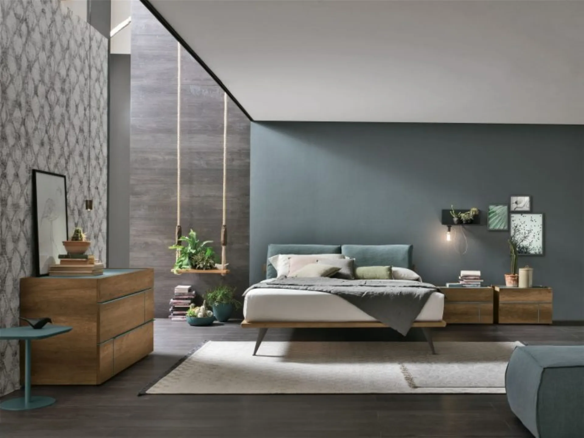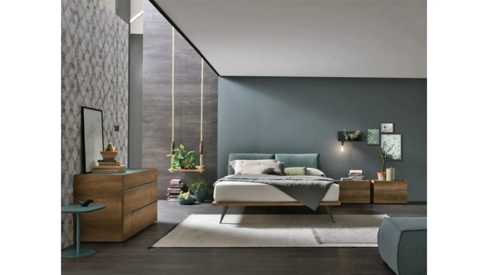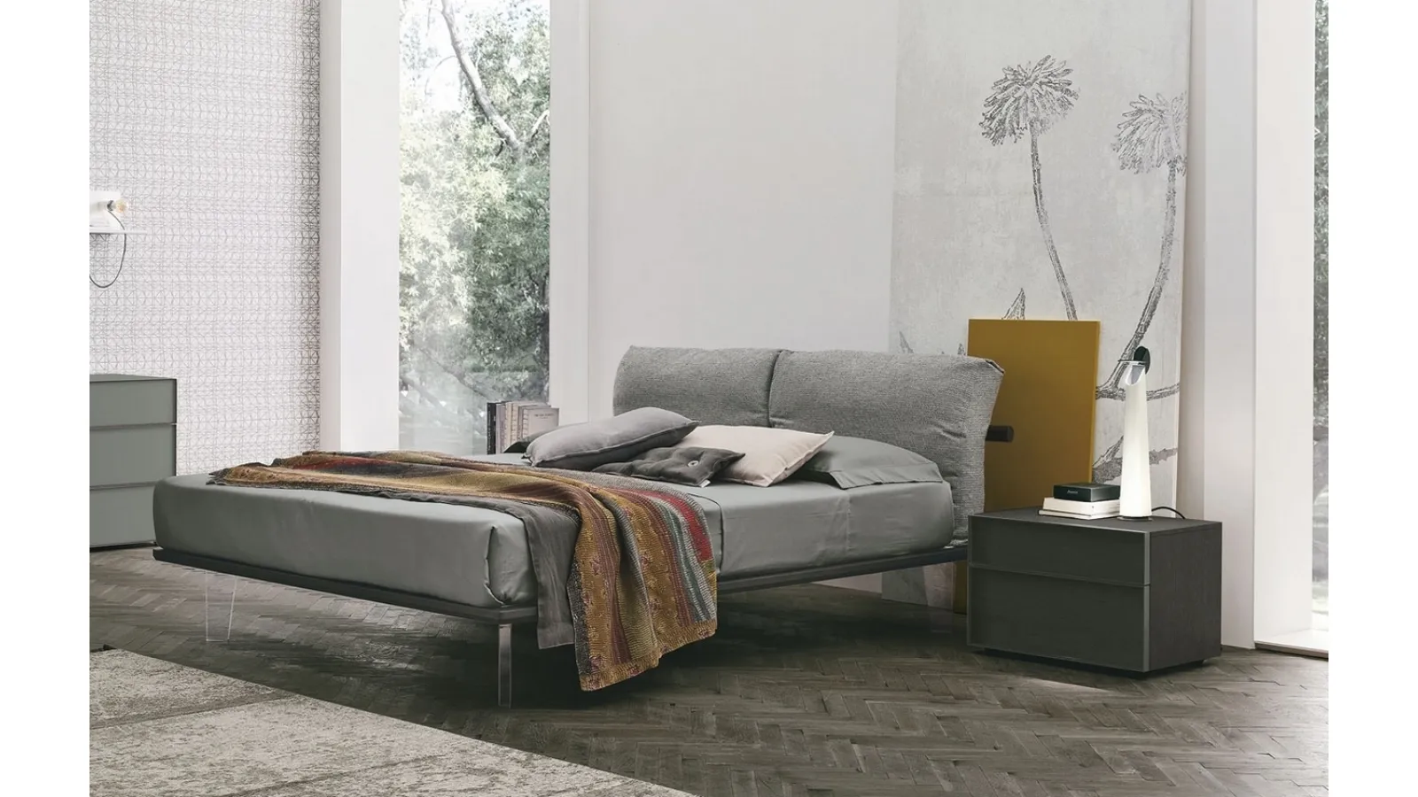 Choose tones and textures and bring to life your bedroom decor concept, designing it just as you imagined it. The upholstered double beds from the brand, a leader in home furnishings for the sleeping area, are designed to complement all kinds of furniture and accessories, such as wardrobes, bedside tables, lamps, and floor lamps. If you prefer a fabric solution, the model shown in the photo is characterized by high-quality materials and clean lines that invite you to enjoy quiet and restful sleep. The Tomasella Piuma Bed recreates a familiar and comfortable space in every bedroom, ensuring total relaxation and unique design. When purchasing a good bed model, carefully consider its dimensions, materials, shape, and style compared to the other pieces of furniture.
