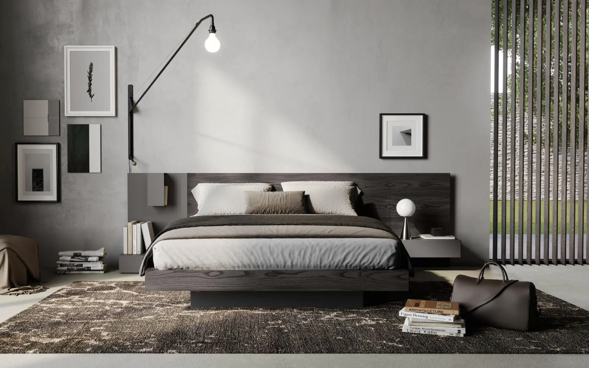 Il letto matrimoniale Letto Matrimoniale con Testata Boiserie Plan di Fimar rappresenta un'innovativa soluzione per la zona notte, integrando una testata boiserie multifunzionale che eleva l'estetica e la praticità dell'ambiente. Questo modello è caratterizzato da un design raffinato, accessori integrati e finiture di altissima qualità. È disponibile in un'ampia varietà di combinazioni materiche, tra cui essenze naturali e laccati opachi, permettendo una personalizzazione profonda e la creazione di un'atmosfera distintiva e su misura. La concezione modulare garantisce un'integrazione fluida in ogni contesto d'arredo, enfatizzando la durabilità e la funzionalità del prodotto. Questa attenzione ai dettagli costruttivi riflette l'eccellenza progettuale e la capacità di offrire soluzioni d'arredo di lunga durata.