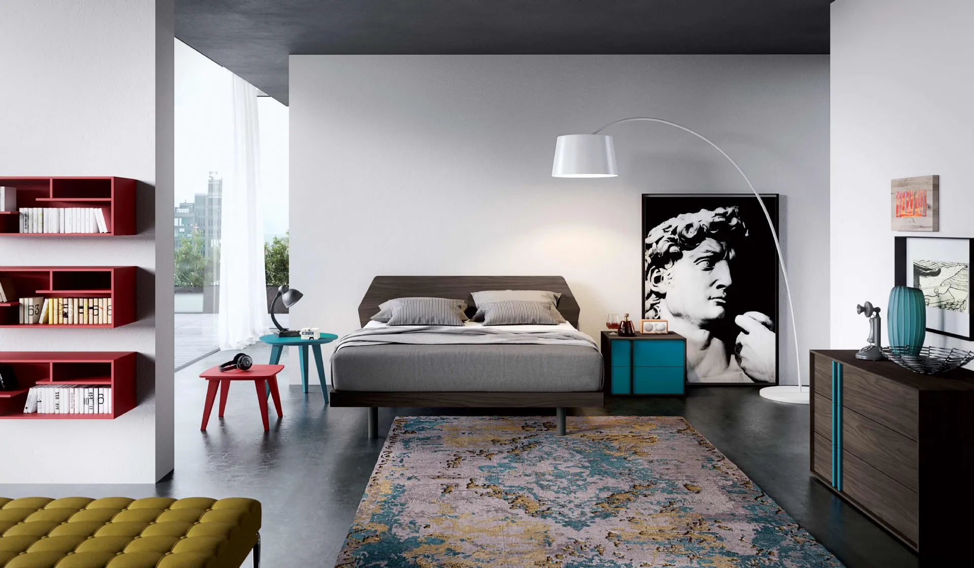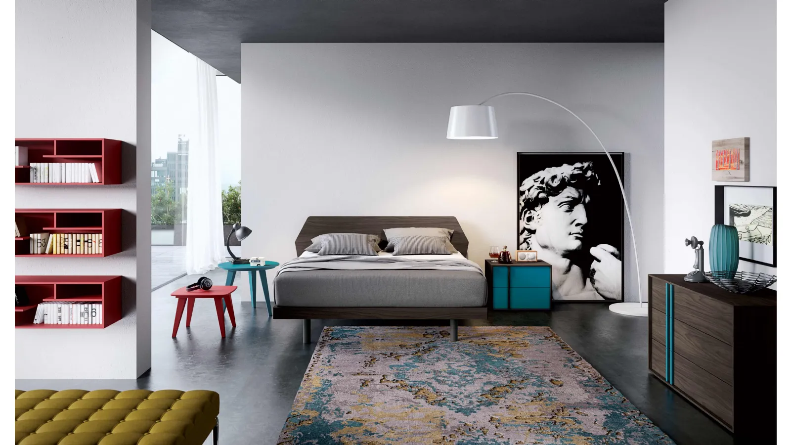 The bed with Prisma headboard by Spagnol Mobili enhances the sleeping area, ensuring the best rest