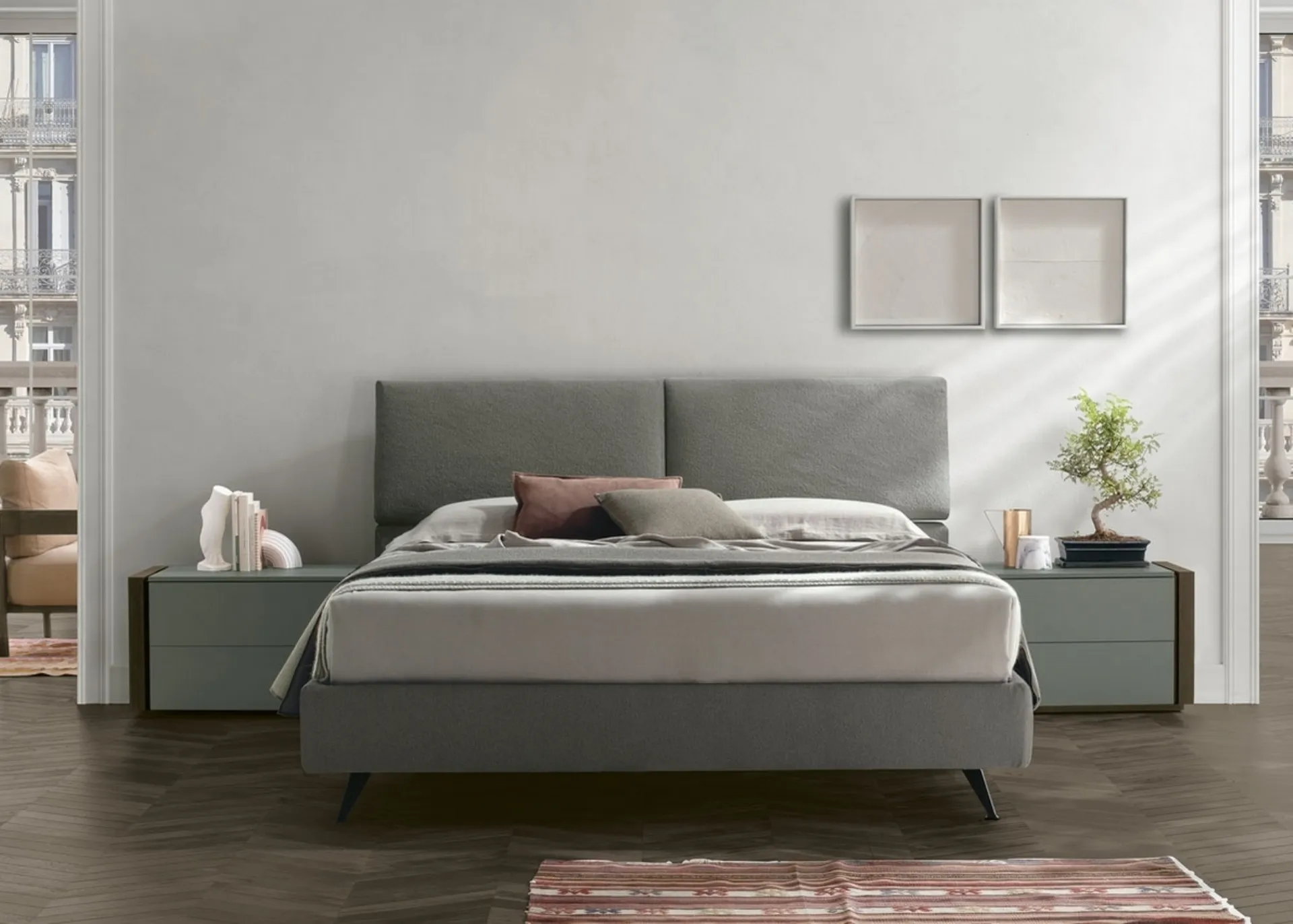The padded double beds by Tomasella await you together with the Set model