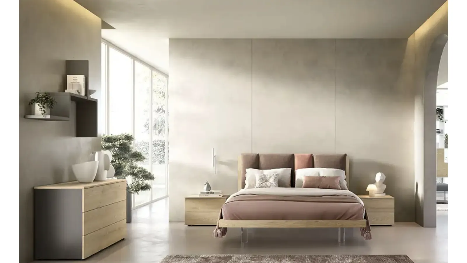 On our website, you will find the most valid proposals from the best brands specializing in bedroom furniture, with a wide range of colors and combinations, accessories, and much more. The Take I13 bed by Moretti Compact Giorno Notte is one of the most original solutions from the brand, a specialist in good sleep, able to ensure functionality, comfort, and a unique style. If you want to guarantee total comfort in your moments of rest, choose modern double beds in fabric like the model shown in the photo. Discover a rich range of upholstered beds from the best furniture brands available in our store and optimize your bedroom. The bedroom is the space in the house that most reflects the taste of the user, a place dedicated to rest, relaxation, and privacy.