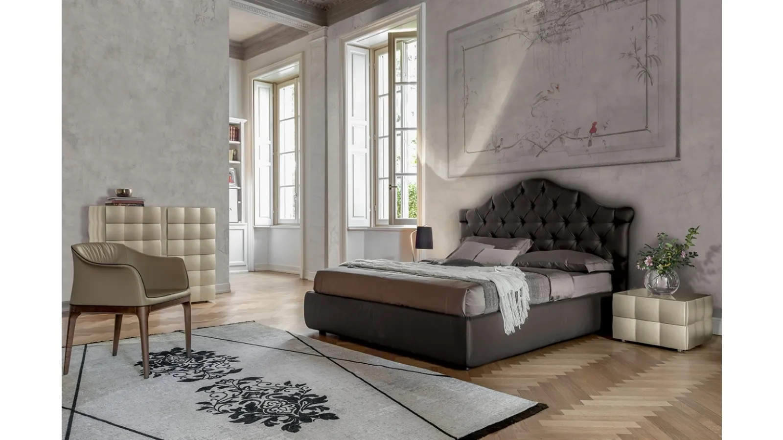 Tonin Casa's Venetian Bed enhances the bedroom ensuring the deepest sleep and an accurate aesthetic research