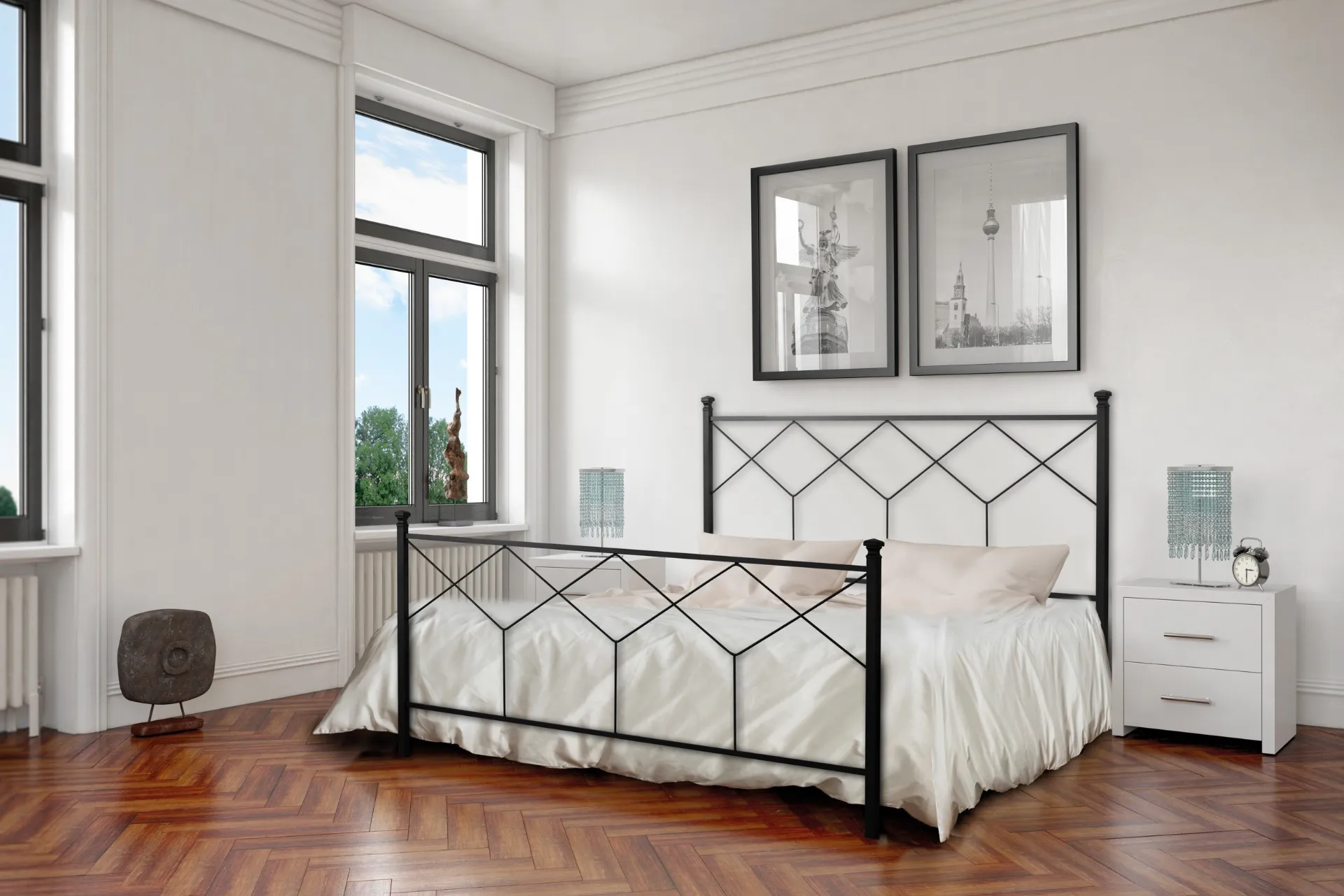 The Intreccio iron bed by Florentiabed creates an intimate and comfortable space in every bedroom, guaranteeing you total relaxation and a unique style. When buying a good bed model, carefully evaluate its measurements, materials, shape and style with respect to the rest of the furnishings. The double beds with headboard of the brand, a specialist in the production of home furnishings for the bedroom, are designed to be combined with furniture and accessory elements of all kinds, such as wardrobes and bedside tables, lampshades and floor lamps. If you are looking for a solution in wrought iron, the model shown in the photo is characterized by quality materials and decisive shapes, which invite you to spend a complete and regenerating rest. Choose shades and finishes and create your own furnishing concept in the bedroom, designing it just as you imagined it.