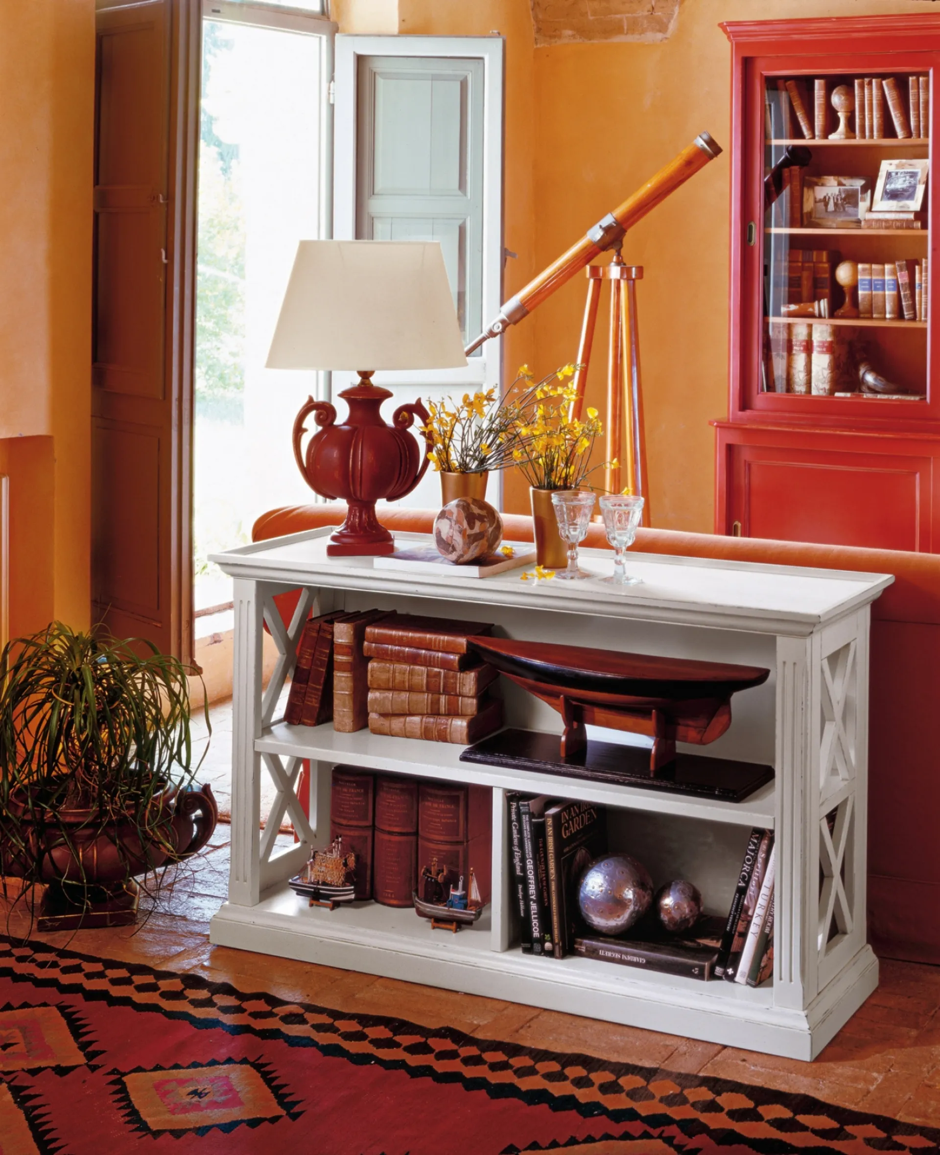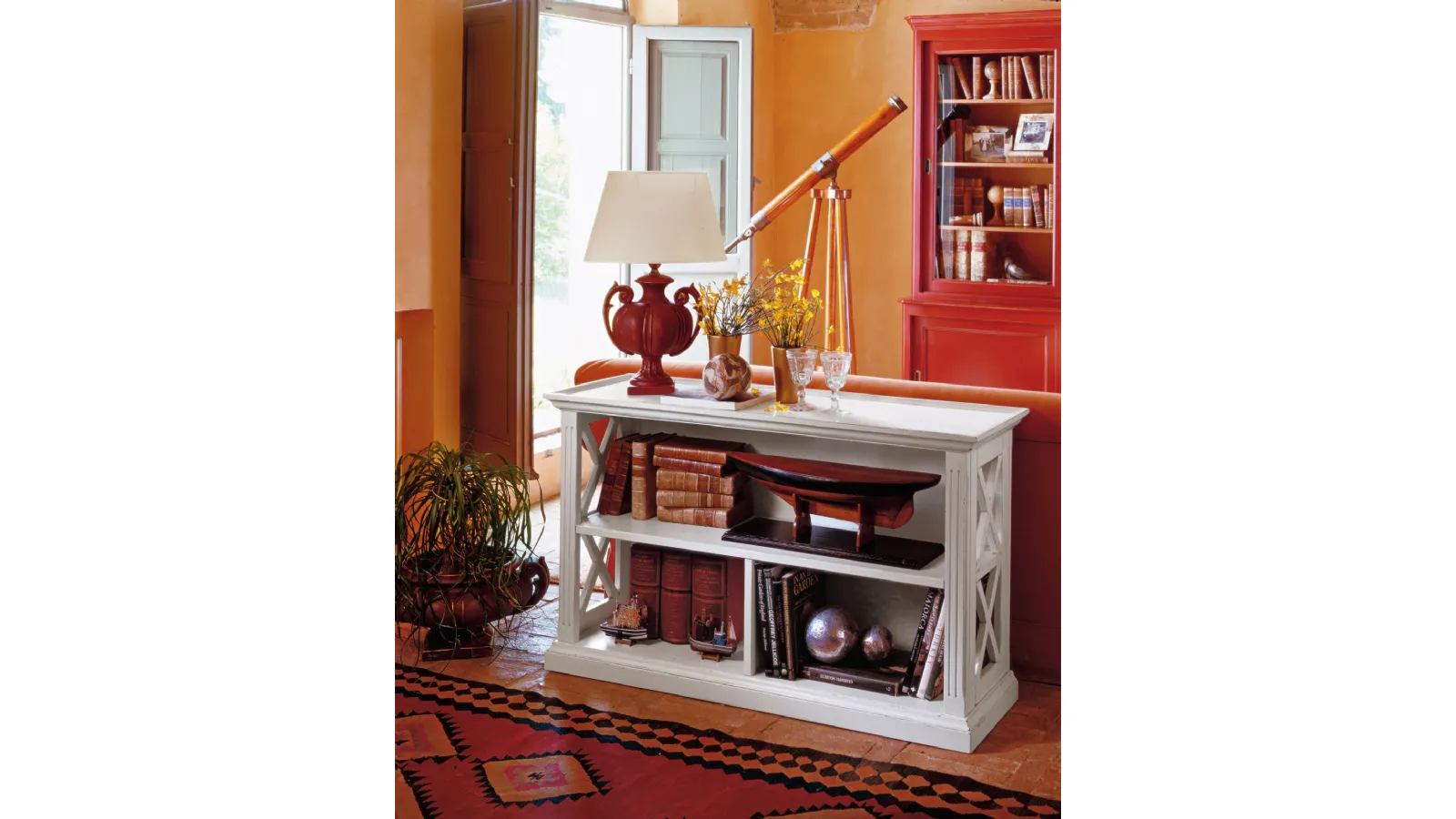 Lacquered wooden bookcase by Tonin Casa, designed to interpret classical settings and optimize interiors.