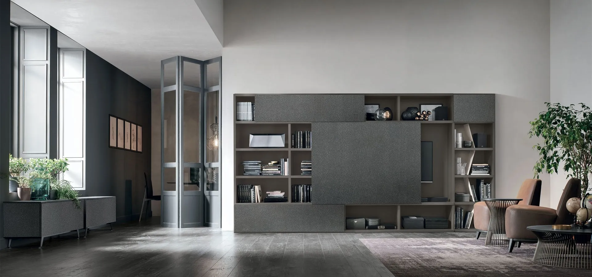 La Libreria Atlante UNIT AT203 di Tomasella è la scelta perfetta per chi cerca una libreria moderna e funzionale, con un servizio completo di progettazione e installazione. Offriamo soluzioni d'arredo personalizzate e consegne efficienti in aree come Lugano, Chiasso, Bellinzona e comuni limitrofi. Questa composizione versatile, con finiture in antracite opaco materico, divisori in metallo e un intreccio scuro, è pensata per valorizzare ogni zona giorno. Il suo design armonioso, arricchito da dettagli come il rovere nodato, garantisce un'estetica accogliente e massima funzionalità, con ampio spazio contenitivo. Il nostro team è a disposizione per offrirti un servizio completo e personalizzato, dalla consulenza alla consegna e montaggio.