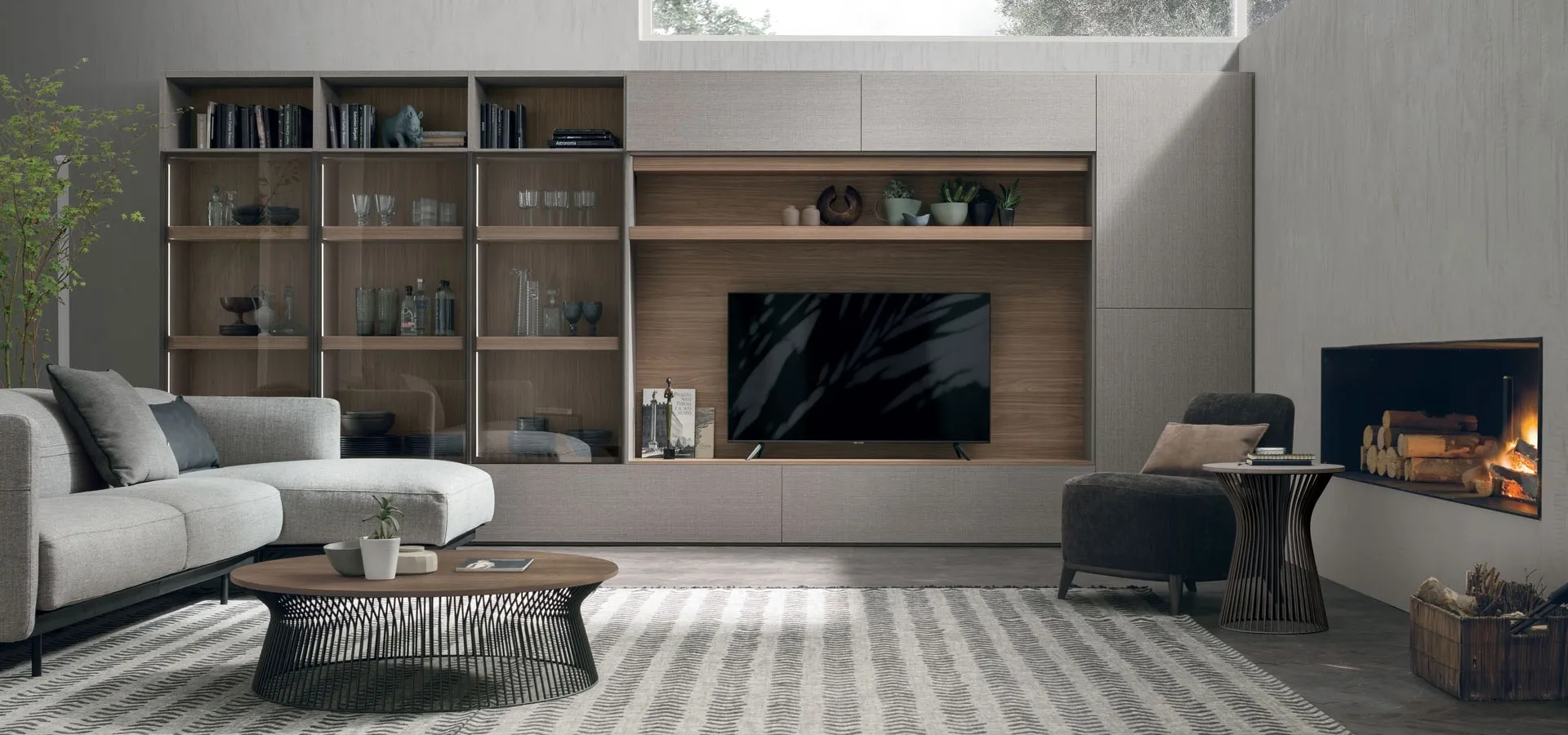 Discover at the best furniture retailers the most original Wall Libraries, including modern ones in melamine ideal for embellishing all types of living rooms. The model shown in the photo is the Atlas Wall Library UNIT AT213 by Tomasella, one of the customizable living room furniture pieces from the renowned Home Furnishing brand. In store, you will find the best professionals, ready to offer you beautiful and functional furniture and accessories for your spaces. Decorating the living room is not difficult if you choose the proper bookcase to furnish your space, the important thing is that it is spacious and pleasant. Keeping the living room tidy is not its only task: with this bookcase, you can shape the furnishing concept you have always dreamed of by making good use of every space.