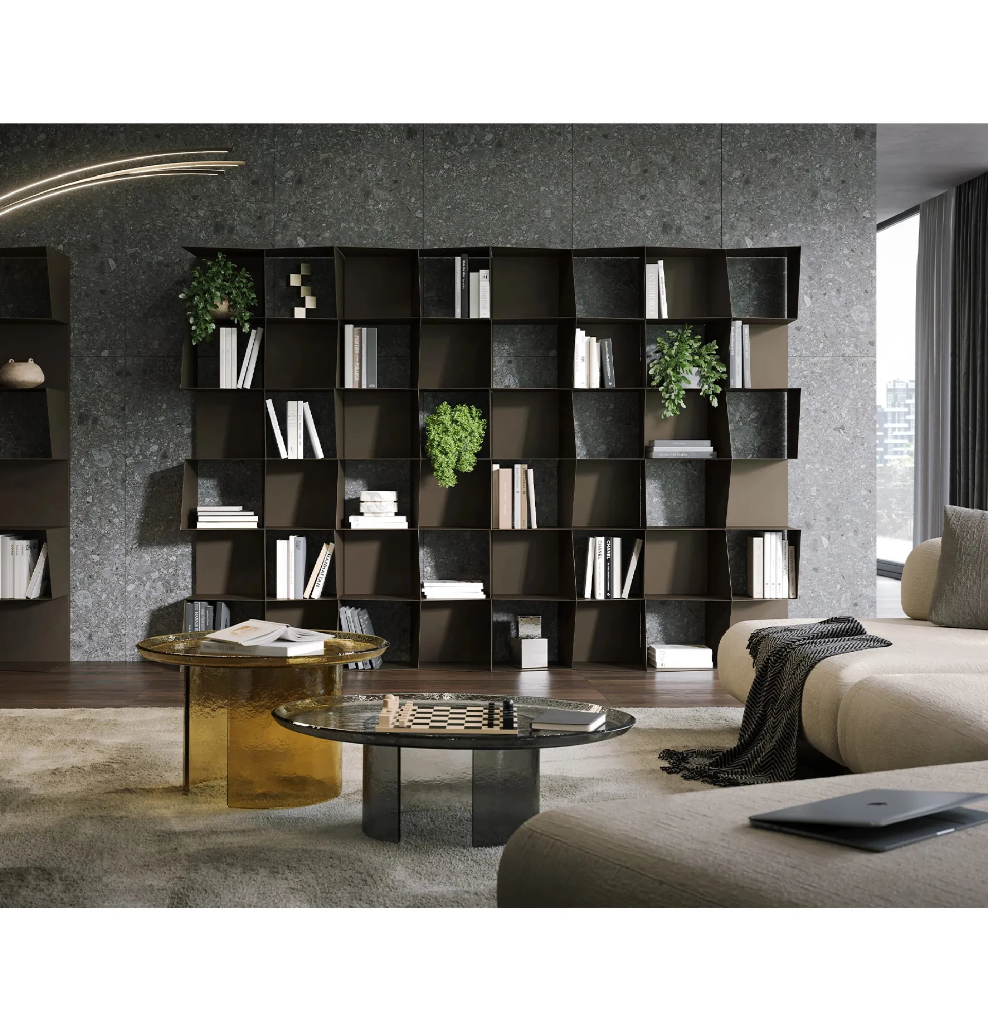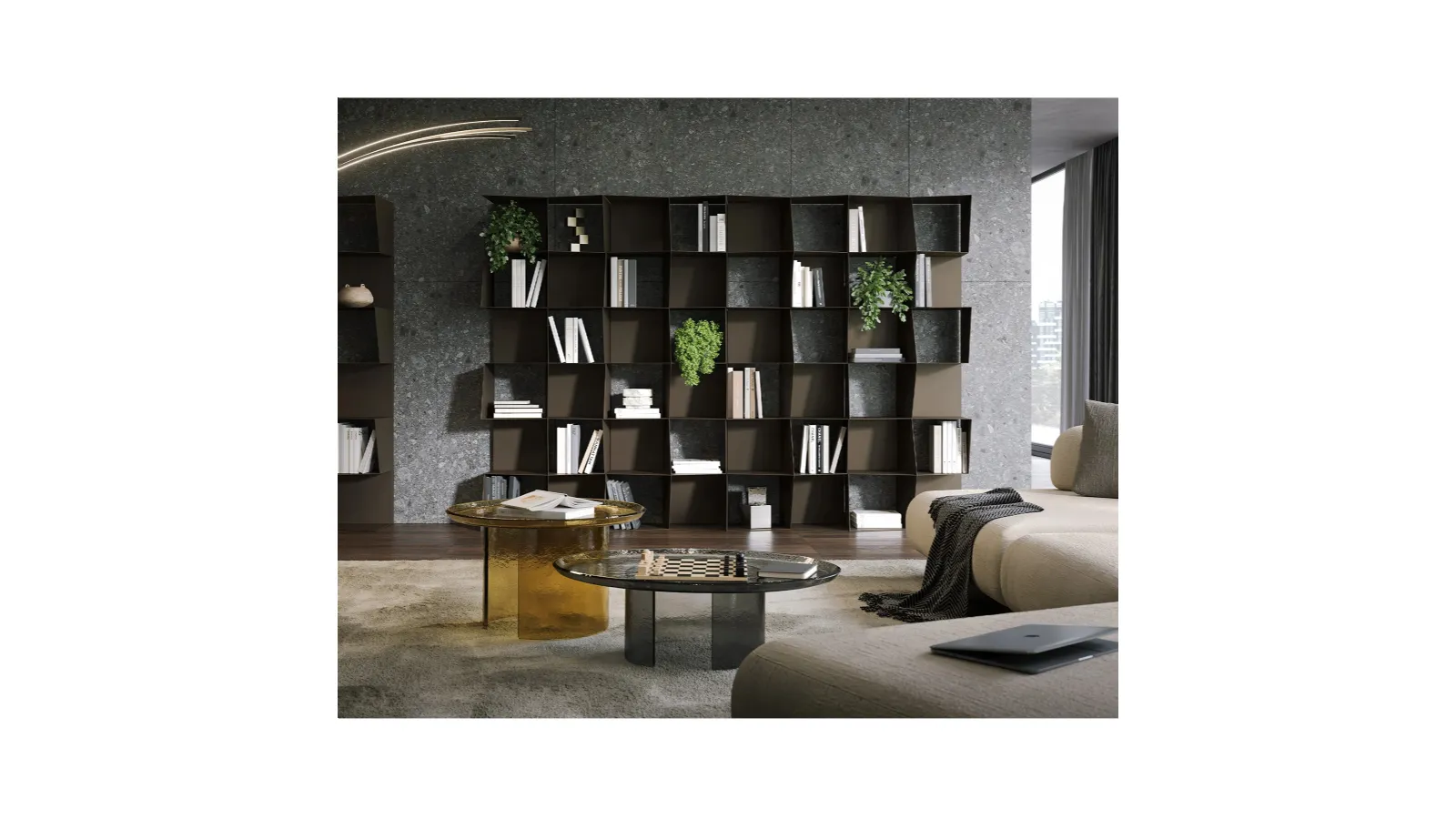 The model featured in the photo is the Checker modular bookcase by Tonin Casa, one of the custom-made living room furniture pieces from the well-known and renowned brand of Home Furniture Como. Decorating the living area is easy if you opt for the suitable bookcase to set up your space, the important thing is that it is spacious and pleasant. Keeping the living area organized is not its only task: with this bookcase you can shape the furniture project you have always wanted, enhancing every space. In our store, the most qualified interior designers await you, ready to show you beautiful and functional furniture and accessories for your home.