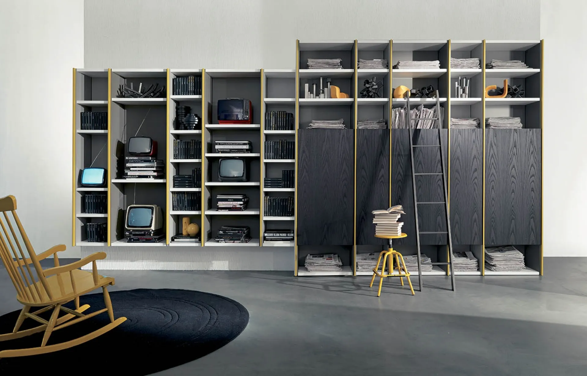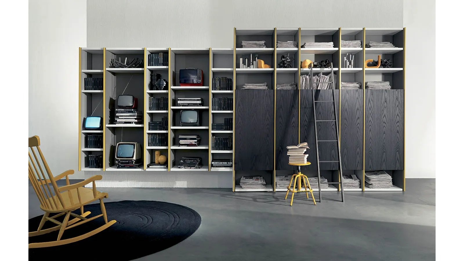 Keeping the living area tidy is not the only task of the design bookcases that we offer you: they organize the spaces by enriching their aesthetics. The Edis 5 bookcase by Fimar is ideal for giving personality to your spaces: the different solutions of the brand will allow you to perfectly equip your living room. Different types of furnishings are placed in the house, which are distinguished above all on the basis of the destination room and their practical and aesthetic qualities. A bookcase will be an essential presence in the living room: it allows us to create a rational and continuous space, as well as beautiful to look at. In the showroom you can find different models of quality furniture for the living area, just like this wooden bookcase among the design wall ones. Among the companies of excellent quality bookcases we certainly find the Fimar brand, which also offers wooden wall-mounted ones.