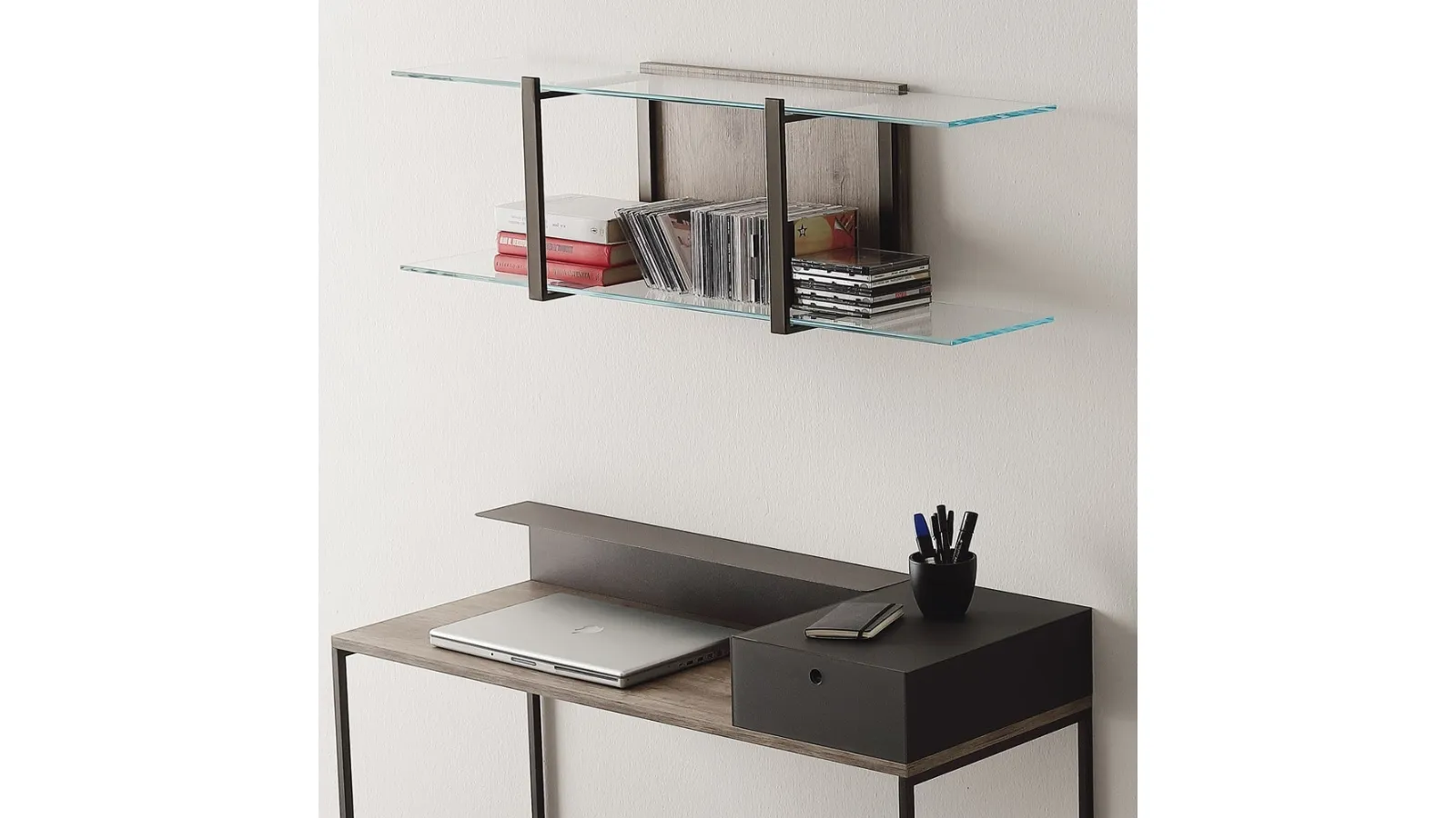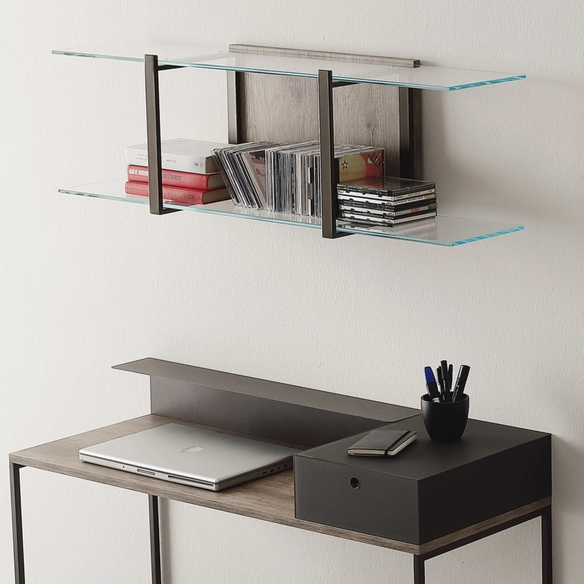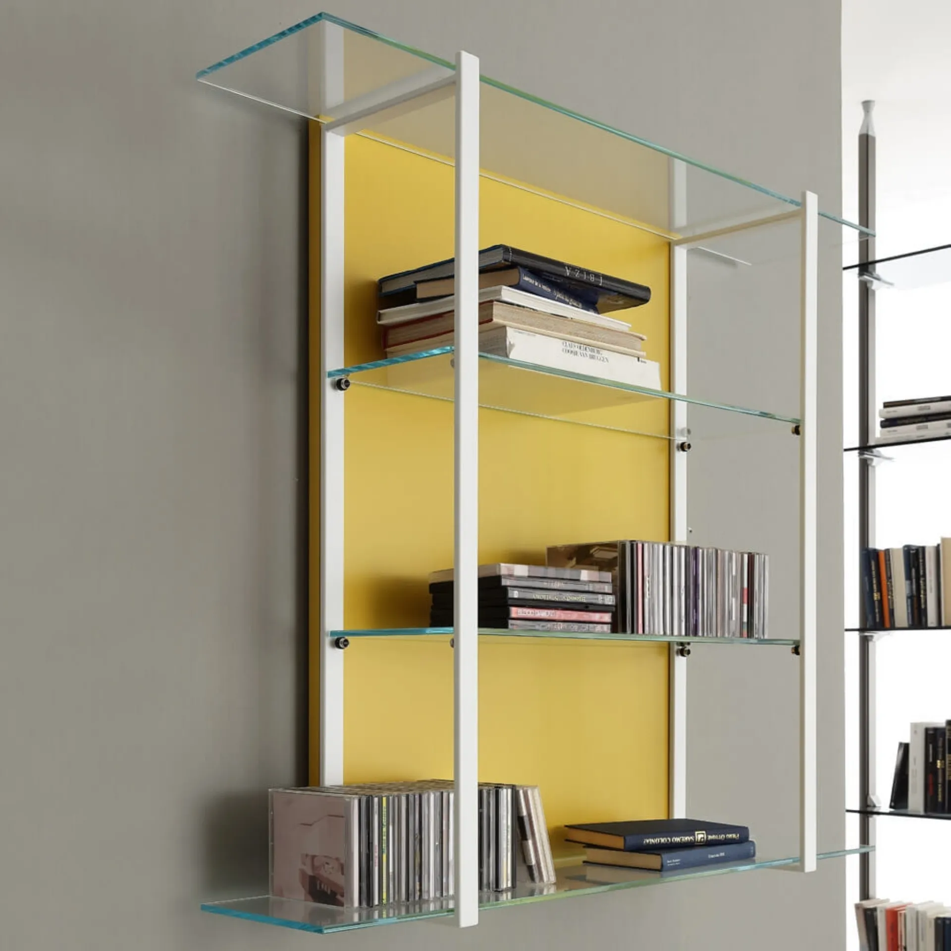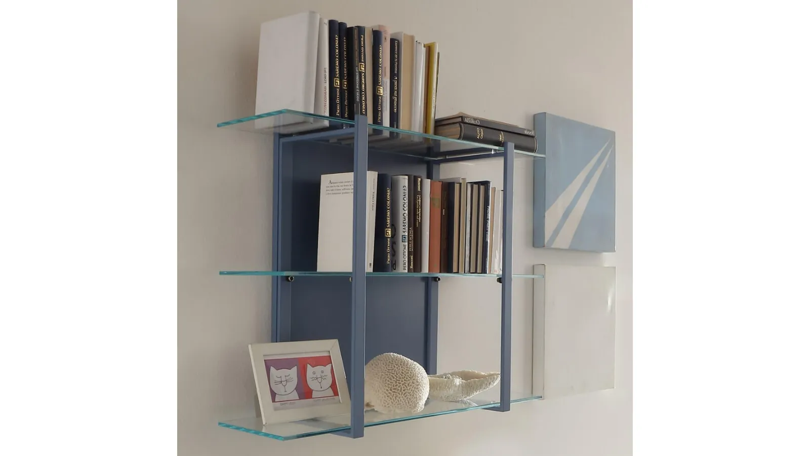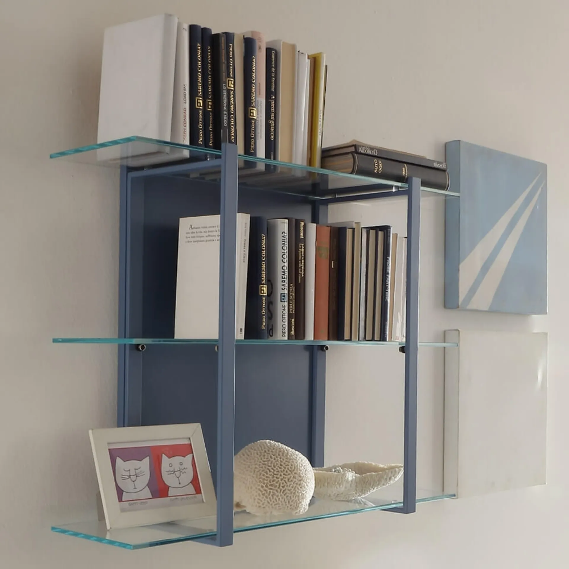 The model shown in the photo belongs to the collection of modern suspended bookcases from the Ponti Terenghi company