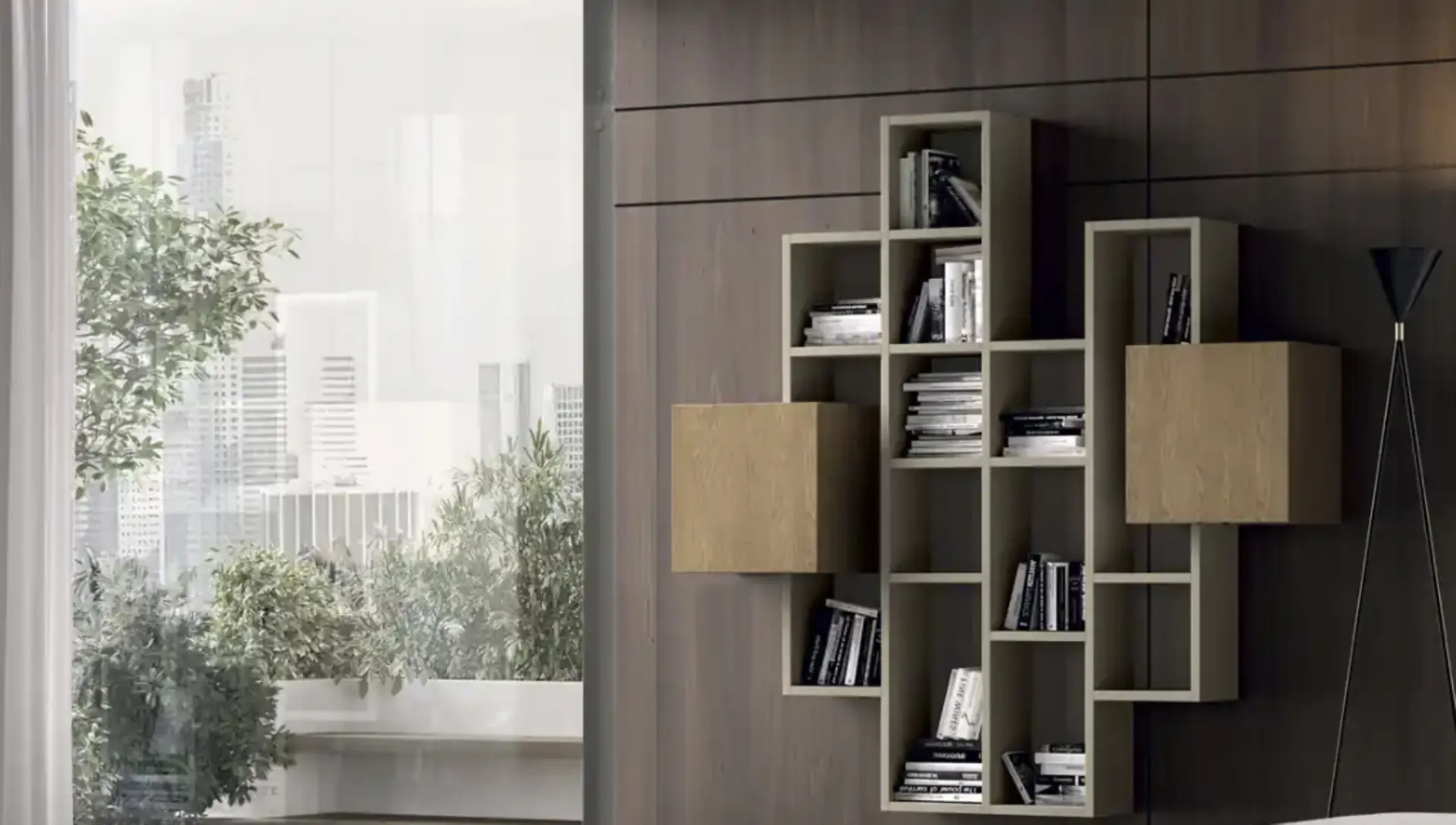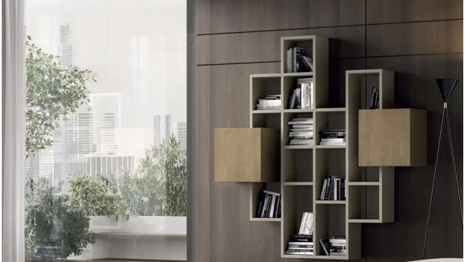 Kosmos KC123B suspended bookcase by Moretti Compact Giorno Notte