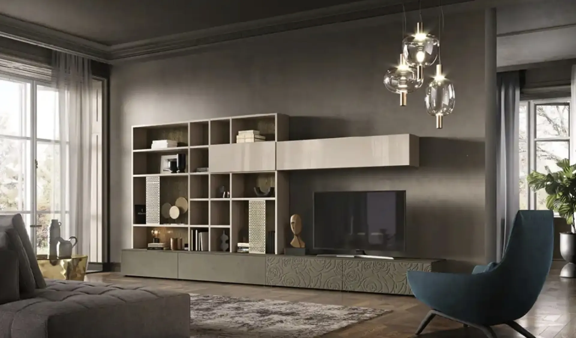 With the matt lacquered living room furniture available here, you can recreate a unique atmosphere characterized by the bold lines of this model. Thanks to the Kosmos KL201 modular bookcase from Moretti Compact Giorno Notte, you can change the style of your home, making the most of every space with an excellent aesthetic effect. In the showroom, you can find multiple models of modern modular bookcases for the living room, such as the model in the photo with a matt lacquered finish. The Kosmos KL201 modular bookcase from Moretti Compact Giorno Notte is ideal for adding character to your spaces: the different solutions from this brand will allow you to set up a dynamic and functional living room. Discover our line of modular bookcases from the best Furniture Home manufacturers in store.