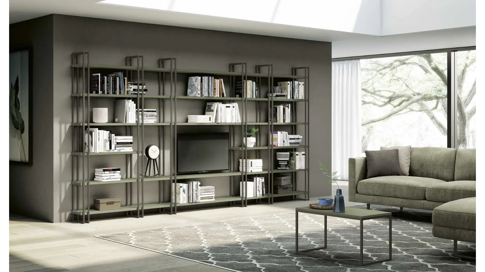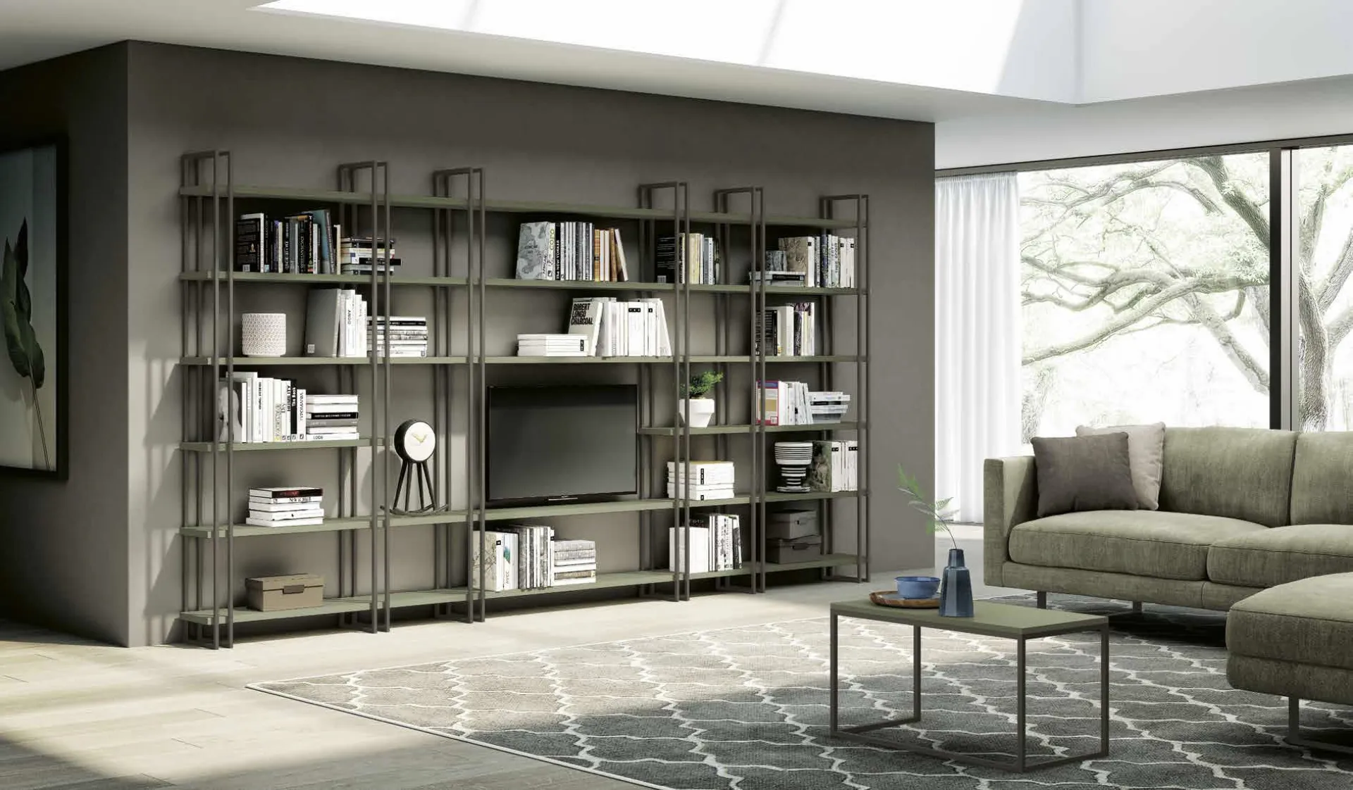 Library for modern rooms made in matte lacquer: discover one of our most exclusive wall solutions.