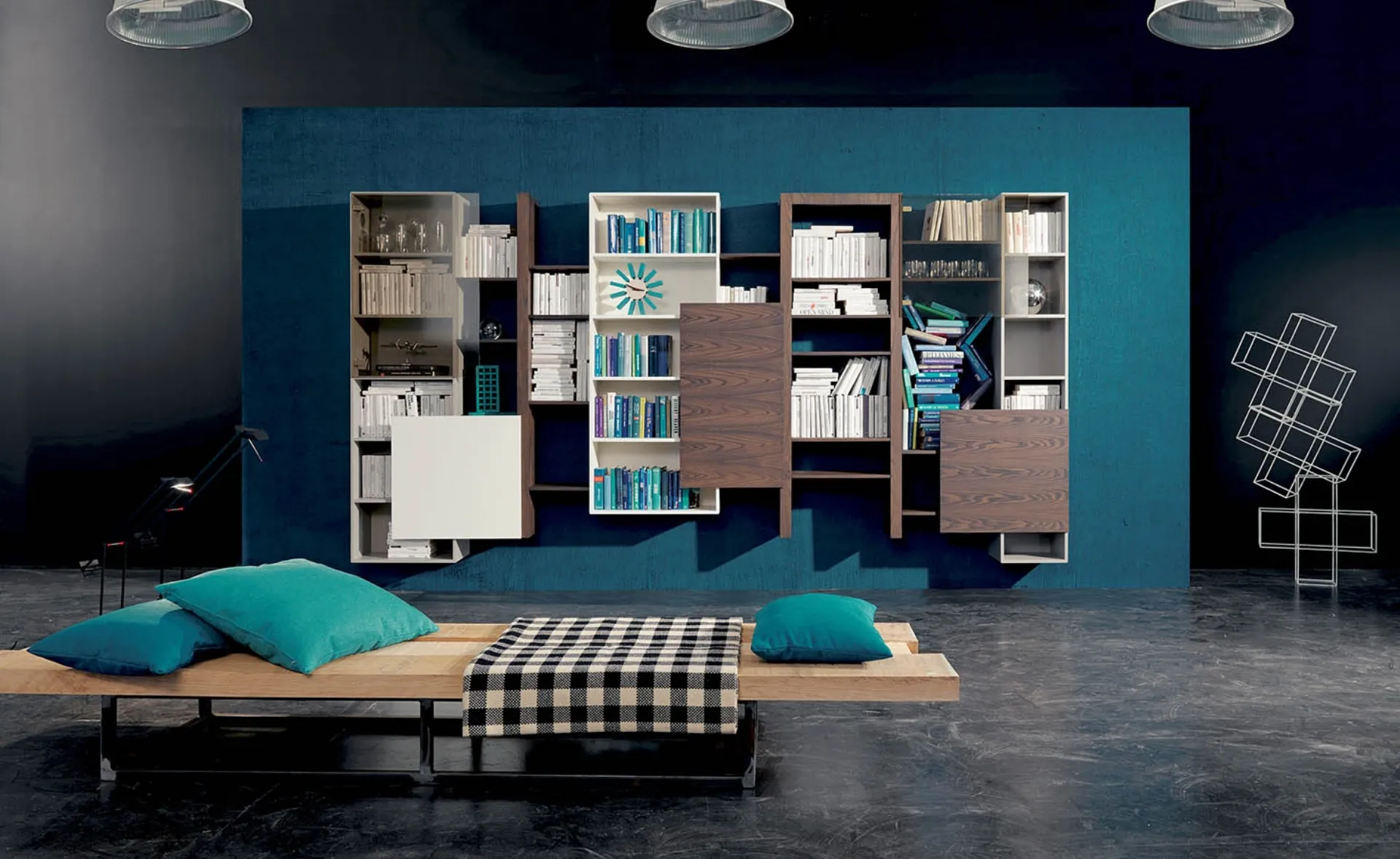Furnishing the living room is not difficult, if you choose the appropriate type of bookcase with which to furnish the environment and enhance the style of the space. All Fimar offers for the living area will allow you to optimally furnish the space according to your personal style and your needs. The furnishings for the living room, such as the bookcases, allow you to keep the living area tidy by containing books, magazines and various objects. If you want a Fimar Side 15 Bookcase, choose the model shown in the photo: it is ideal for giving character to the premises, organizing them well. In the living room, a beautiful model of bookcase allows you to display and arrange different objects, as well as to enhance the aesthetic value of the room as a whole. This wooden proposal is ideal for giving character to design rooms thanks to well-studied lines and first choice materials resistant over time and of great aesthetic value. You can find several models of design suspended design bookcases in our shop, with essential lines as well as the most refined design.