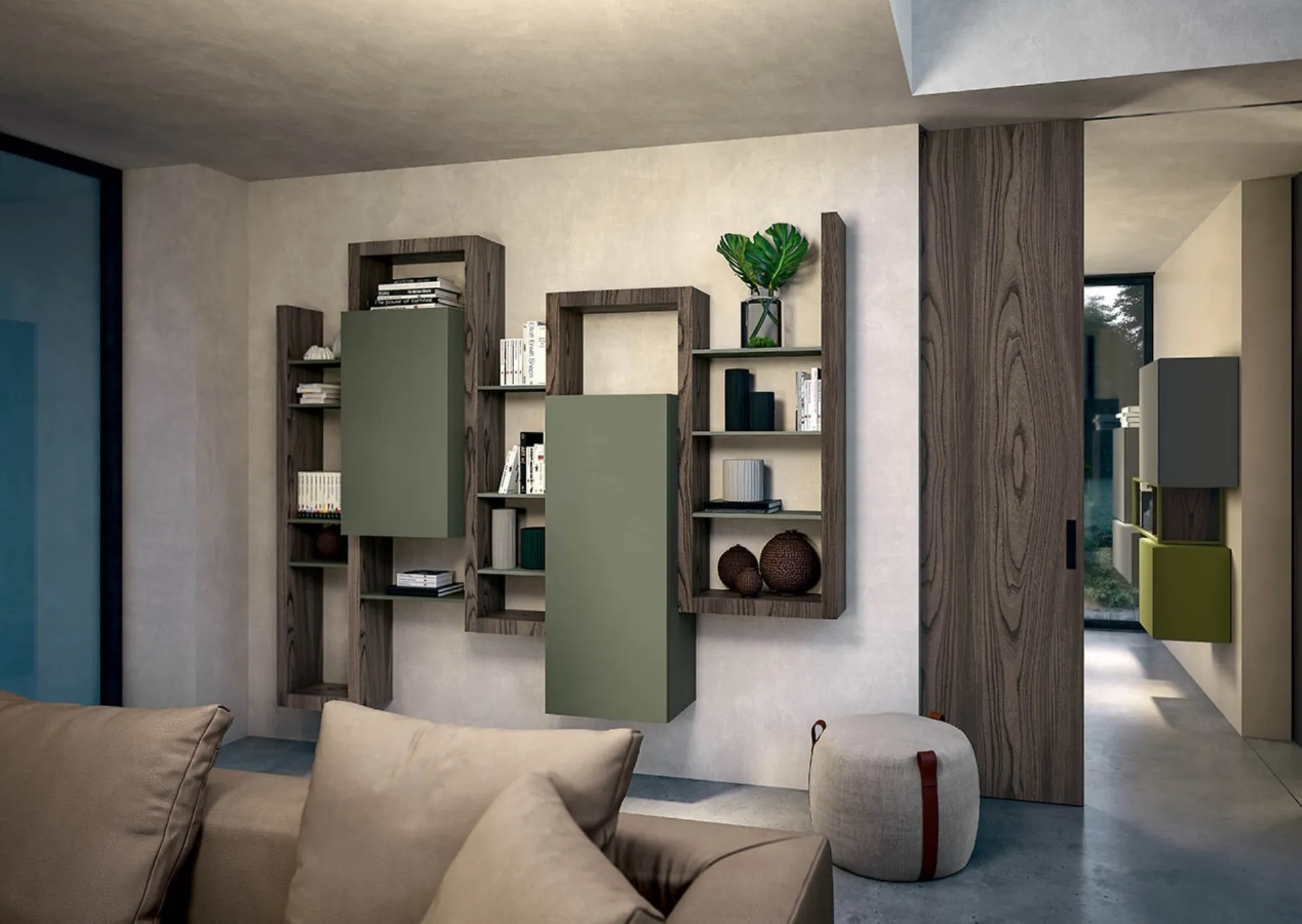The model shown in the photo belongs to the collection of suspended design bookcases by the brand Fimar.