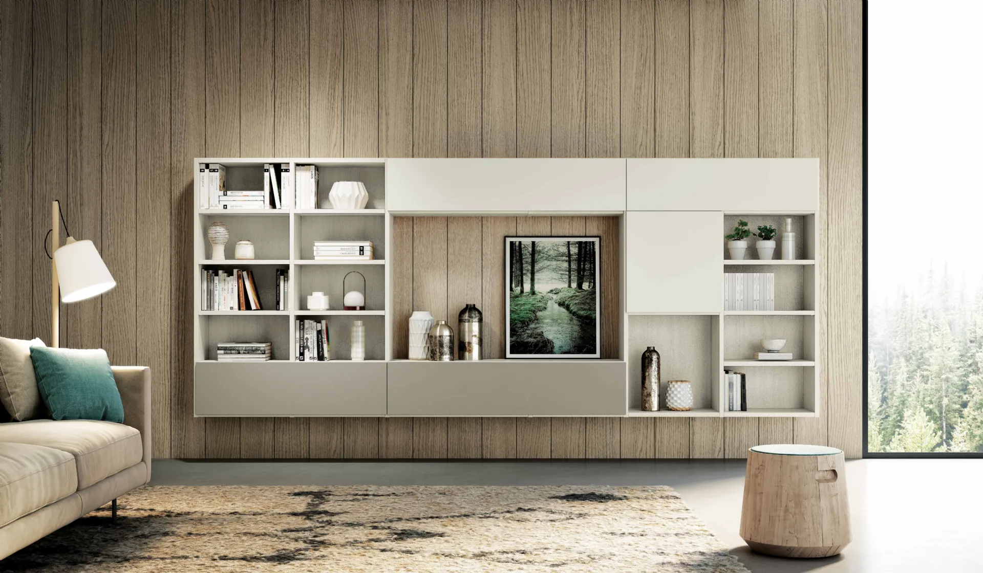 We are waiting for you with a wide range of modern floating bookshelves and matte lacquer living room furniture.