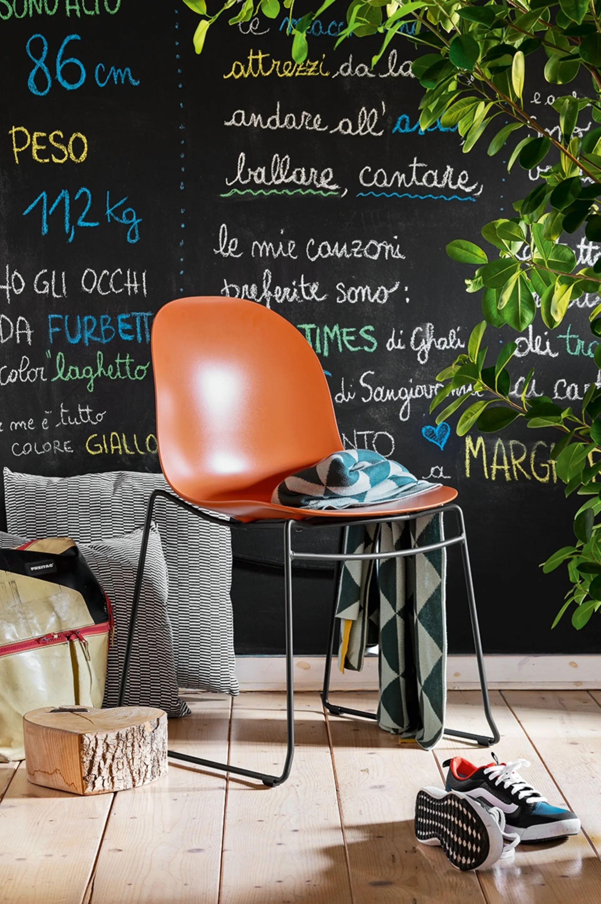 | Materiale: | Scocca: plastica 100% riciclata, tessuto, plastica trasparente, ecopelle; Struttura: legno certificato, metallo |