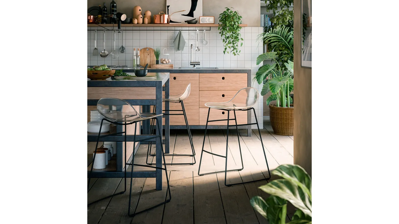 Discover the modern Connubia Chairs: the Transparent Academy Stool kitchen model shown in the photo