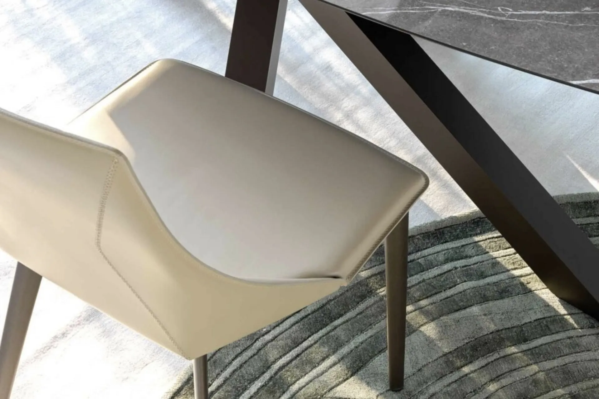 Discover modern chairs Brianza Chairs: the Aura dining model shown in the photo awaits you.