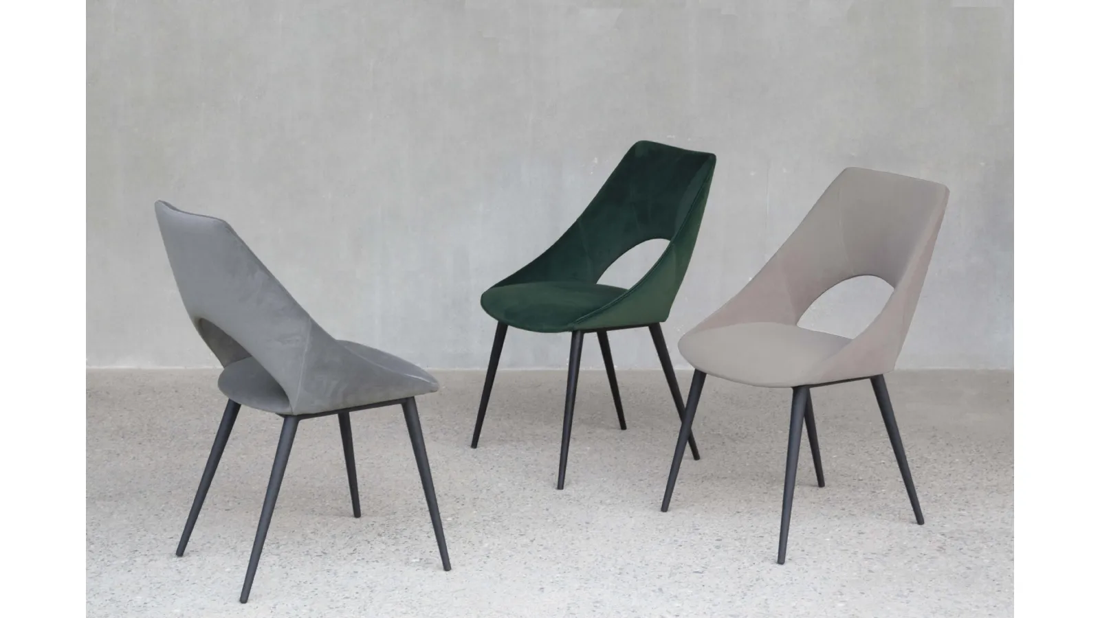 | Materiali Sedile e Schienale: | Ecopelle (ottanio, grigio titanio), Velluto (sabbia, grigio fumo, verde) |