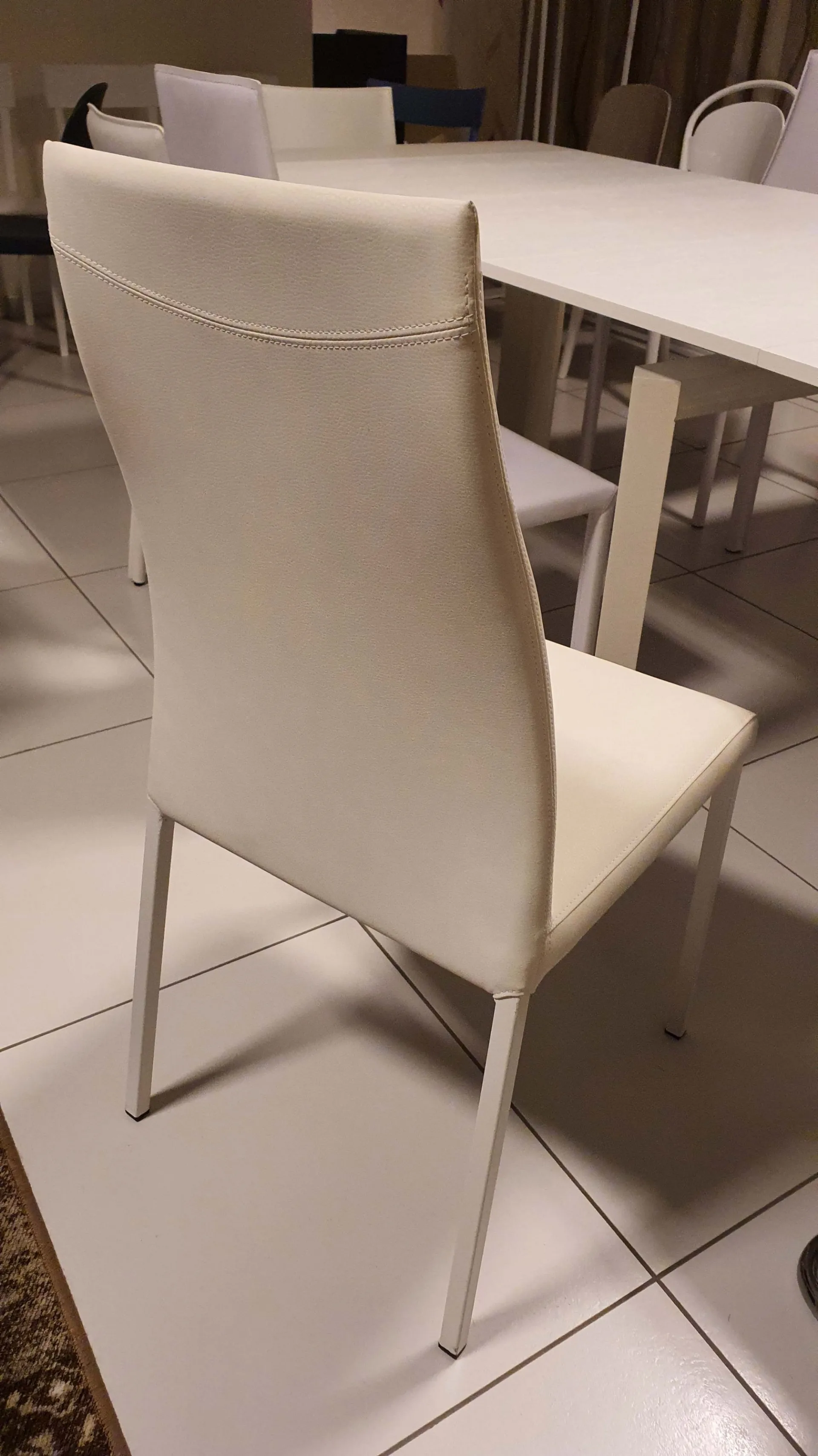 BEAUTY chair with legs in painted metal section in white color.