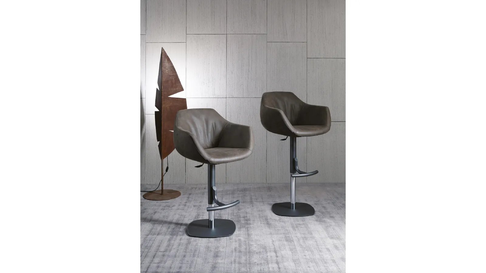 In addition to fulfilling an essential role, these furniture pieces are able to enhance even impersonal and accessory-free spaces. Design chairs, whether in wood or upholstered, are complex pieces of furniture, characterized by an almost infinite range of colors, lines, and patterns. In our store, we offer exclusive furniture and accessory elements, among which you will surely find the solution that suits you. Contact us and find out more about the Boris leather stool by Ozzio model shown in the photo. Among the best brands available in our Home Furniture store, you will find the most exclusive kitchen stools on the market. A leather chair like the one shown here decorates a living room or a high-quality kitchen, adding value to the spaces.