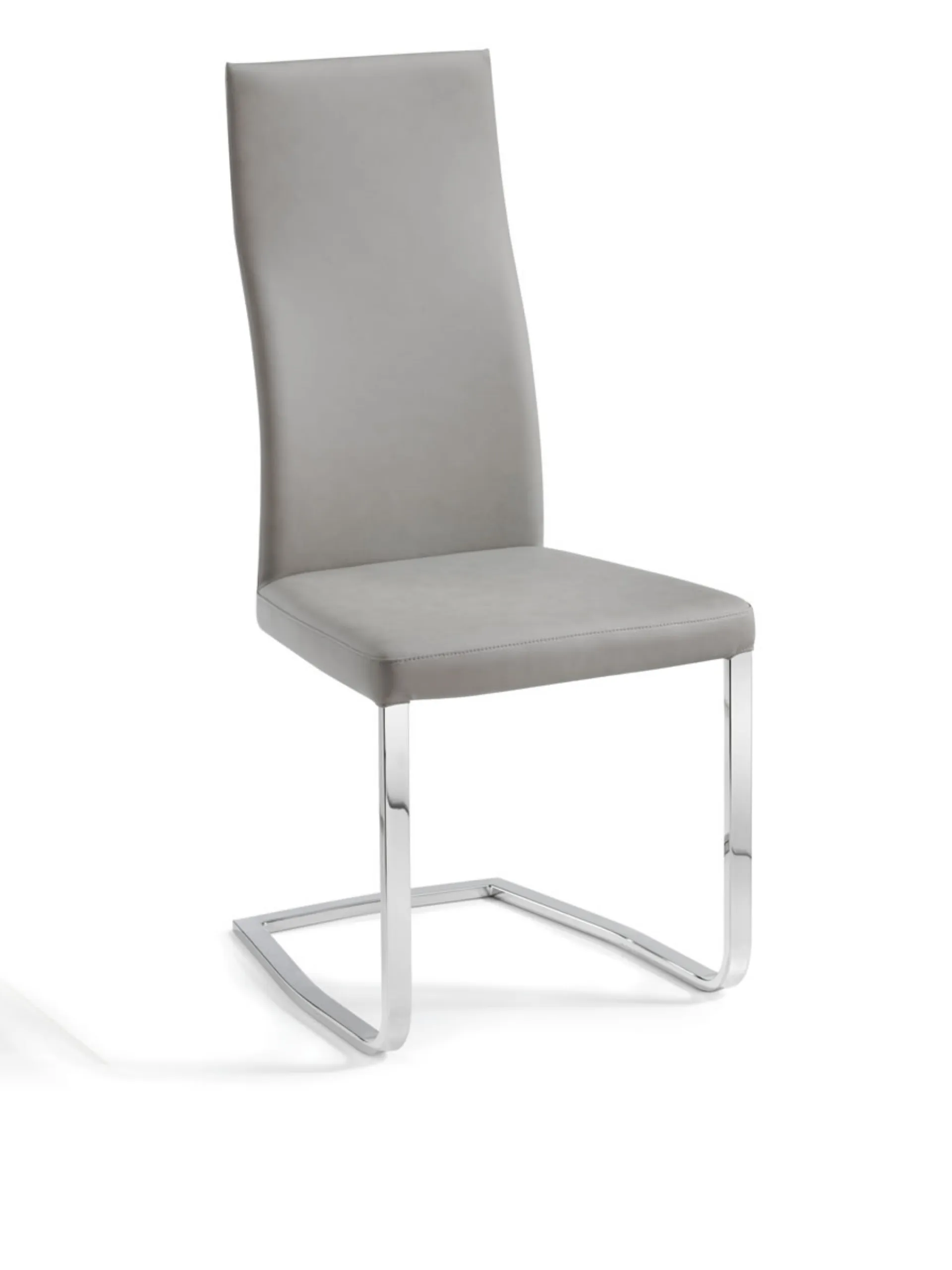 Modern shape and anatomical lines for this gray fabric chair