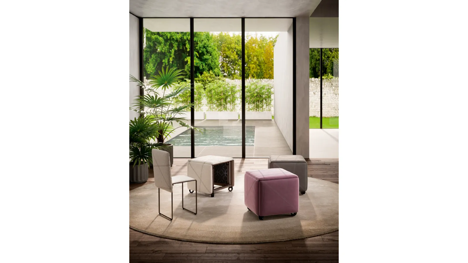 Disponibile per essere ammirato e acquistato presso il nostro showroom Rusconi Arredamenti s.r.l. a Cirimido, il Pouf Trasformabile in Sedie Cubix di Ozzio è un mobile ingegnoso e versatile, perfetto per massimizzare l'efficienza degli ambienti. Questo pouf ospita ben cinque soluzioni di seduta, di cui quattro sono pratiche sedie ripiegabili dotate di schienale confortevole. È dotato di quattro rotelle integrate per un agile spostamento e presenta un'estetica raffinata evidenziata da doppie cuciture che contribuiscono a un facile riposizionamento degli elementi. Vieni a scoprire le offerte esclusive e le promozioni dedicate disponibili solo nel nostro punto vendita Rusconi Arredamenti s.r.l..