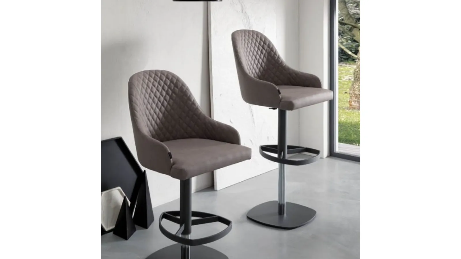 If you want to complete modern settings, the model visible in the photo fits well in a locale of this style. Taking a look at our solutions in eco-leather will allow you to find the kitchen model you have always desired. With this comfortable, ergonomic, and aesthetically pleasing solution, you will be able to finish your furnishing project and complete the room where you spend time with family and friends. A rich catalog of furniture and accessories is waiting for you in our store, where you will find eco-leather chairs and stools from the best brands. The kitchen and dining area will not be truly complete without the right chairs, to be matched with the rest of the furniture and the style of your interiors. Dylan gas lift stool by Ozzio: choose one of the most original proposals from the brand, a specialist in the Home Furnishing sector.